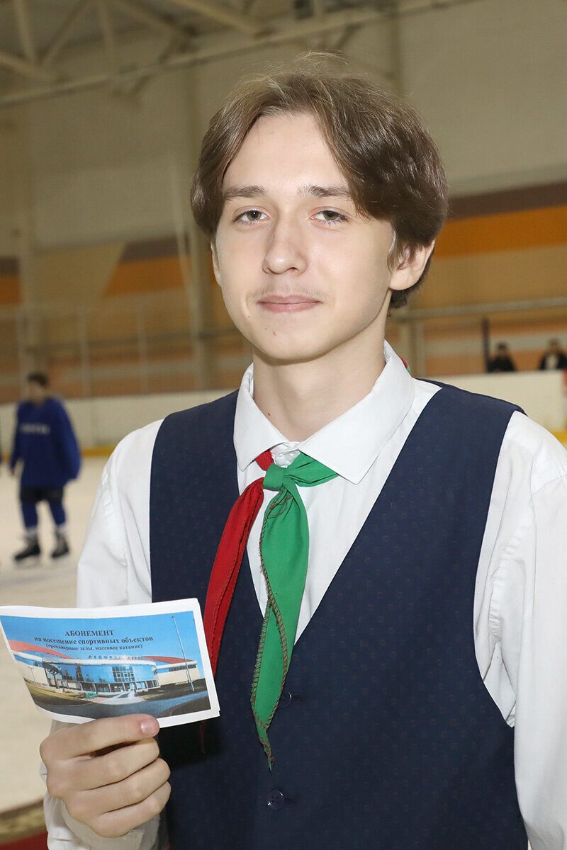 Во второй день соревнований сектор спорта и туризма Горецкого районного исполнительного комитета вновь оставил под трибуной подарок болельщикам. Сегодня удача улыбнулась учащемуся ГУО «Средняя школа № 3 г. Горки» Александру Левковичу, который нашел под своим сиденьем сертификат на 5 посещений Ледовой арены.