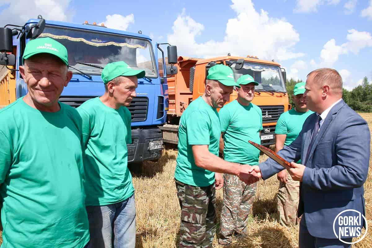 Глава района Михаил Гулый, поздравляя передовика, отметил, что с каждым годом ОАО «Маслаки» набирают обороты в проведении уборочной кампании и сегодня диктуют высокий темп на жатве другим хозяйствам района, являются лидерами и по количеству обмолоченных площадей зерновых и зернобобовых культур в 35%, и по их урожайности около 40 ц/га.
