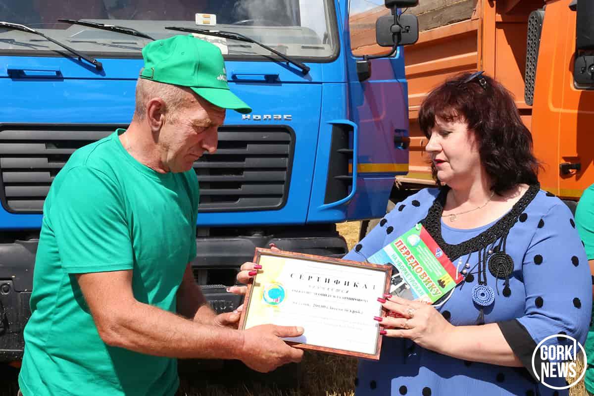 Председатель районного объединения профсоюзов Марина Бандык отметила высокий профессионализм водителя и его ответственность, благодаря чему и был достигнут успех. Председатель РК профсоюза работников АПК Елена Чаплыгина пожелала передовику сил, вдохновения и скорейшего покорения очередного рубежа – 2-тысячной отметки на перевозке зерна. Лидеры общественной организации вручили водителю Диплом, профсоюзную символику на машину, которая будет отличать героя жатвы, и весомые денежные премии.