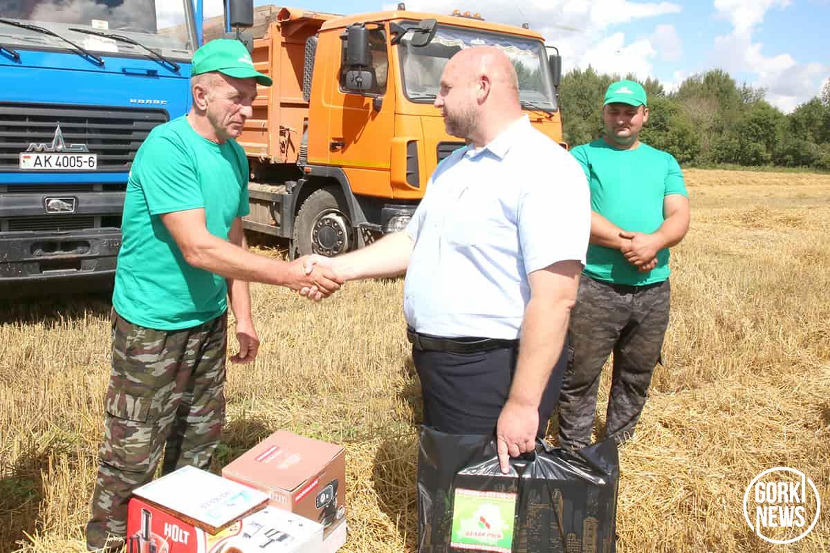Михаил Владимирович дал наказ герою дня не сбавлять обороты, демонстрировать лучшие результаты на перевозке зерна и вручил ему Диплом и кухонный комбайн. Председатель районного Совета депутатов и председатель районной организации РОО «Белая Русь» Максим Потапенко пожелал Леониду Рыжкову крепкого здоровья, всех благ, чтобы техника не подводила, и вручил ценный подарок.