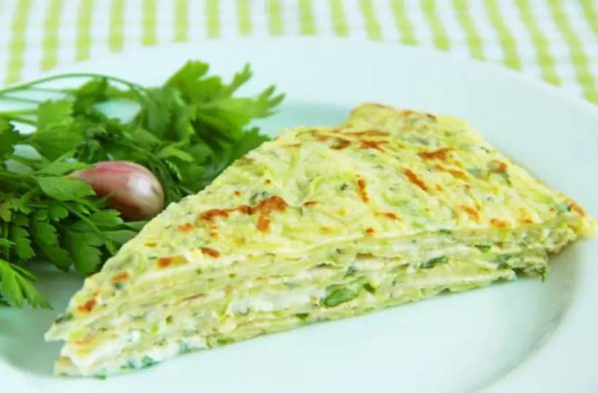 5. Собрать торт: кабачковые блинчики промазать кремом и соединить, слегка придавливая. Торт готов.