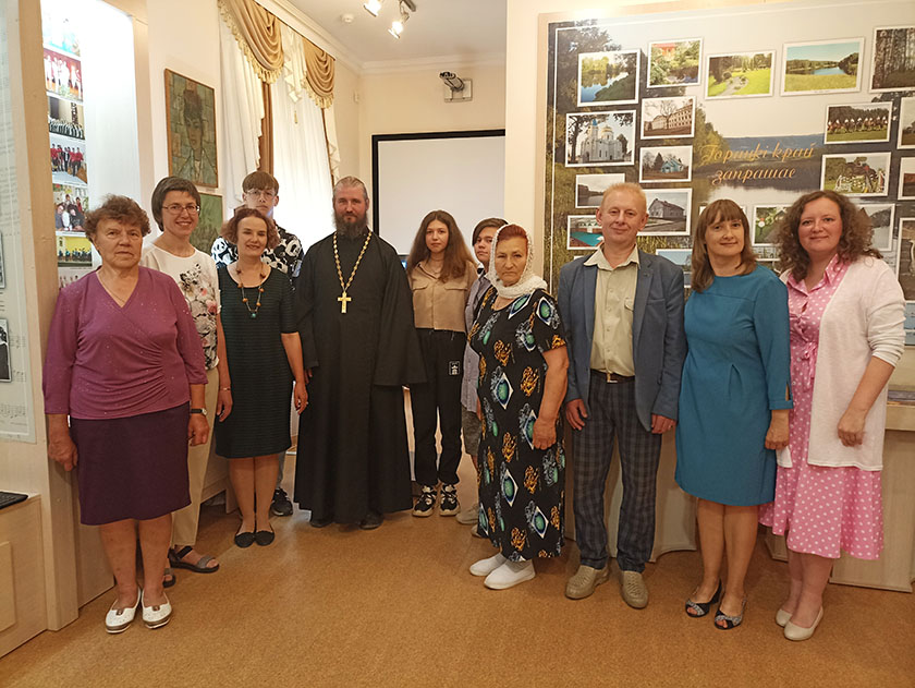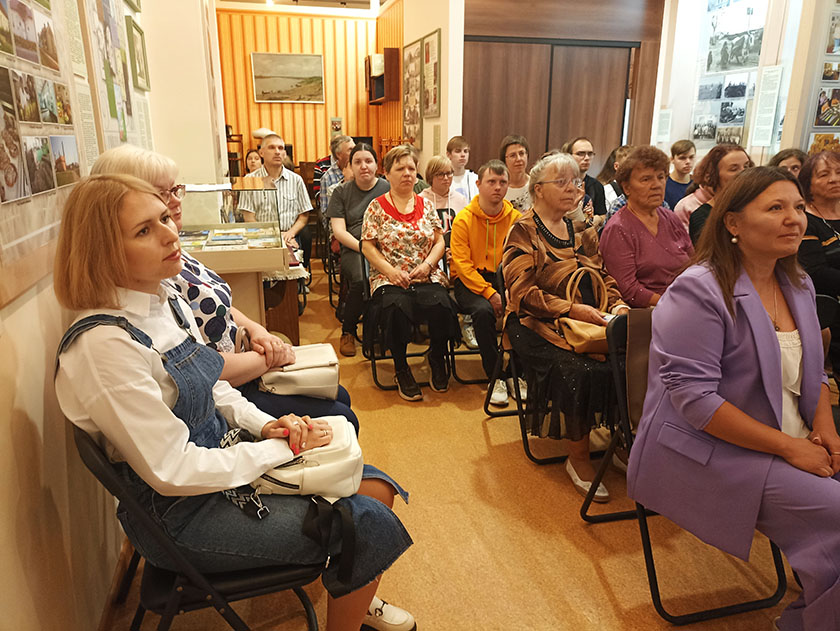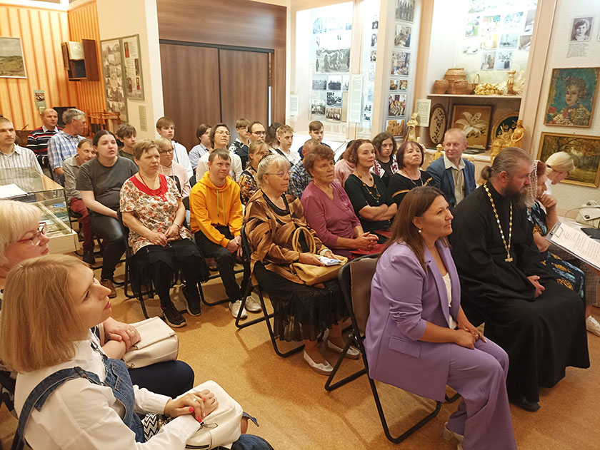 У адным з залаў музея сабраліся горацкія паэты, супрацоўнікі акадэміі, студэнцкая і вучнёўская моладзь, ветэраны працы, людзі з інваліднасцю. На сустрэчу запрасілі і настаяцеля храма ў гонар іконы Божай Маці «Спарыцельніца хлябоў» іерэя Мікіту Храмянкова.