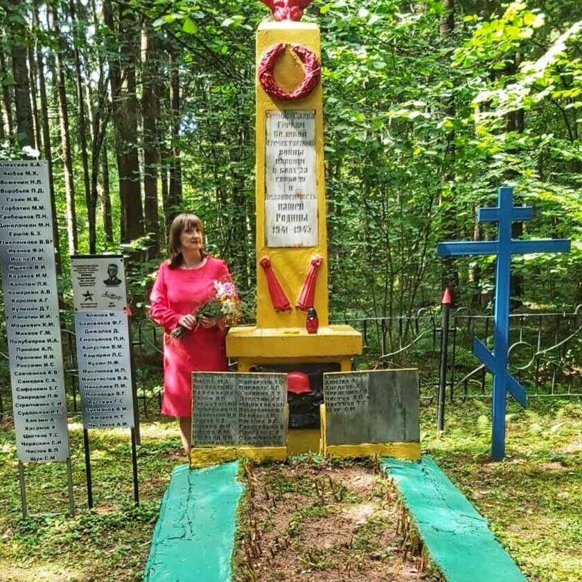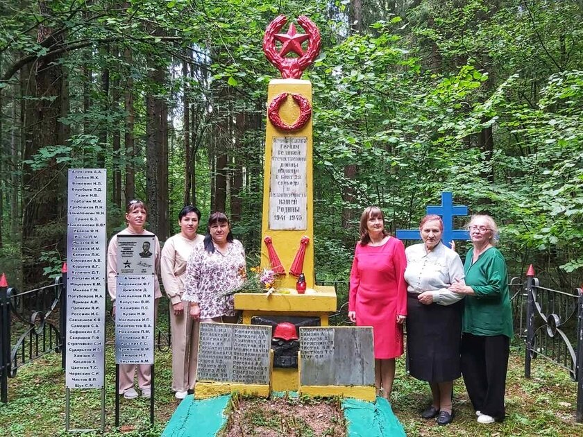Участники этого путешествия посетили памятные места, отражённые в творчестве Нины Дмитриевны: обелиск в деревне Тёмный Лес, установленный по улице Коптевской в память о погибших безымянных лётчиках, и памятник в урочище Москалёвка, расположенный возле деревни Еськовка. В годы Великой Отечественной войны на этом месте стоял военный госпиталь более чем на 1000 мест. Автор этих строк рассказала об истории обелисков, показала присутствующим табличку, установленную лётчику-лейтенанту Андрею Алексееву в урочище Москалёвка благодаря спонсорской помощи Нины Дмитриевны.