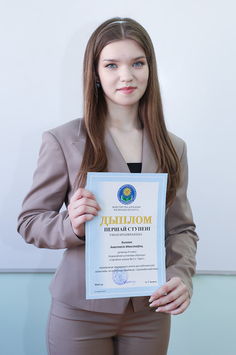 Десятиклассница СШ № 2 Анастасия Быкова стала победителем республиканской олимпиады по обществоведению, завоевав Диплом I степени. К высокому результату привели крепкий тандем с учителем обществоведения Татьяной Безносовой, блестящие знания, колоссальный труд, выдержка и настойчивость