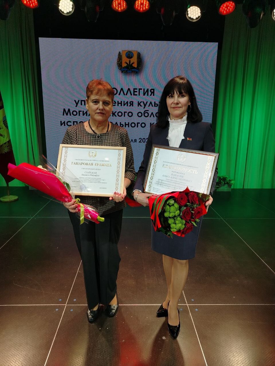 Почетной грамотой отметили начальника отдела культуры райисполкома Ольгу Панасюк и директора ГУО «Детская школа искусств и художественных ремесел Горки» Людмилу Ставскую.