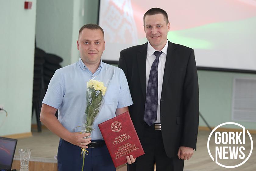 Начальник управления налогообложения физических лиц Владимир Стремужевский вручил Почетные грамоты ИМНС по Могилевской области  Дмитрию Рыжову, главному государственному налоговому инспектора управления контрольной работы, и Инне Макаревич, главному государственному налоговому инспектору отдела камеральных проверок. Подробности — в субботнем номере «Горецкого вестника».
