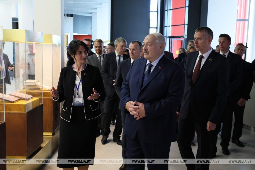 Глава государства ознакомился с экспозицией музея, пообщался с представителями трудовых коллективов, общественности и молодежи Могилева и Могилевского района.