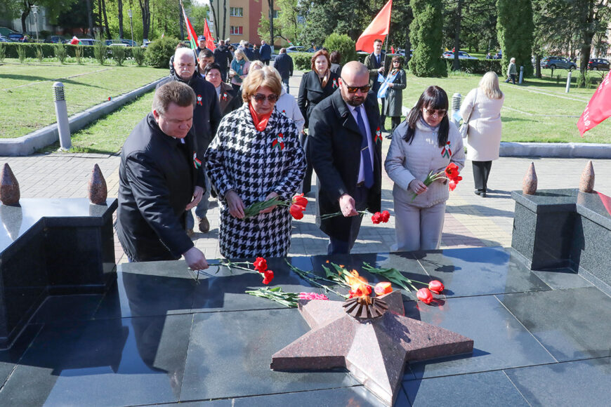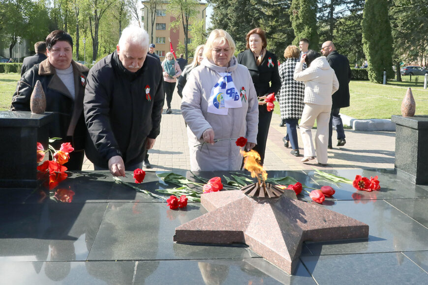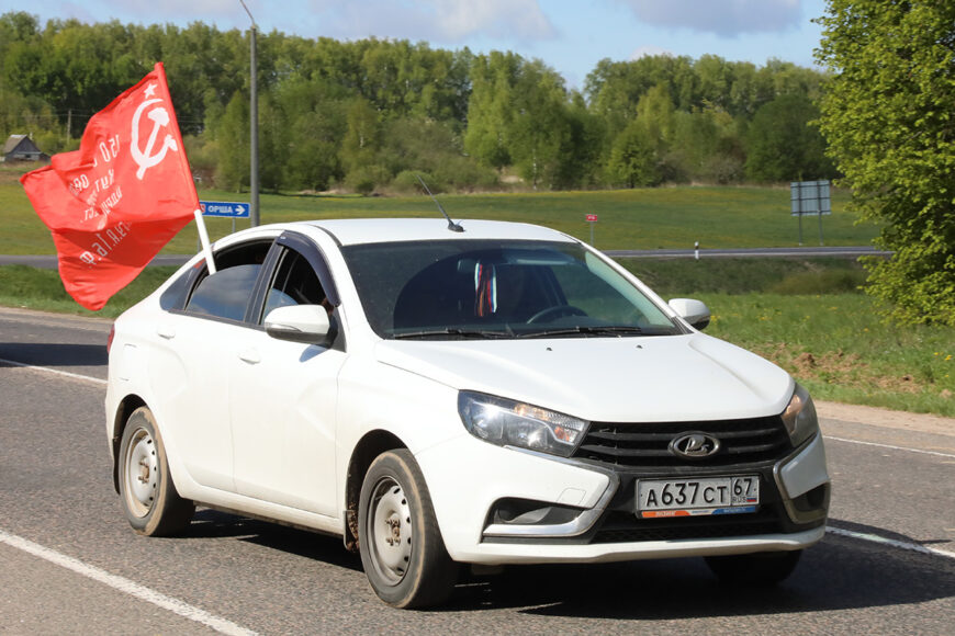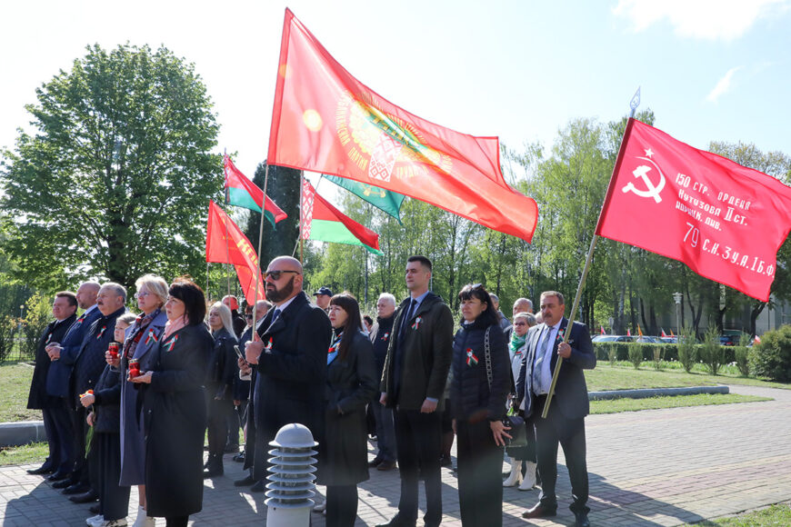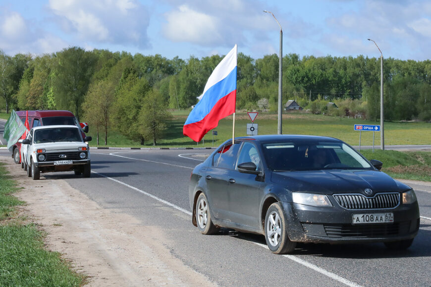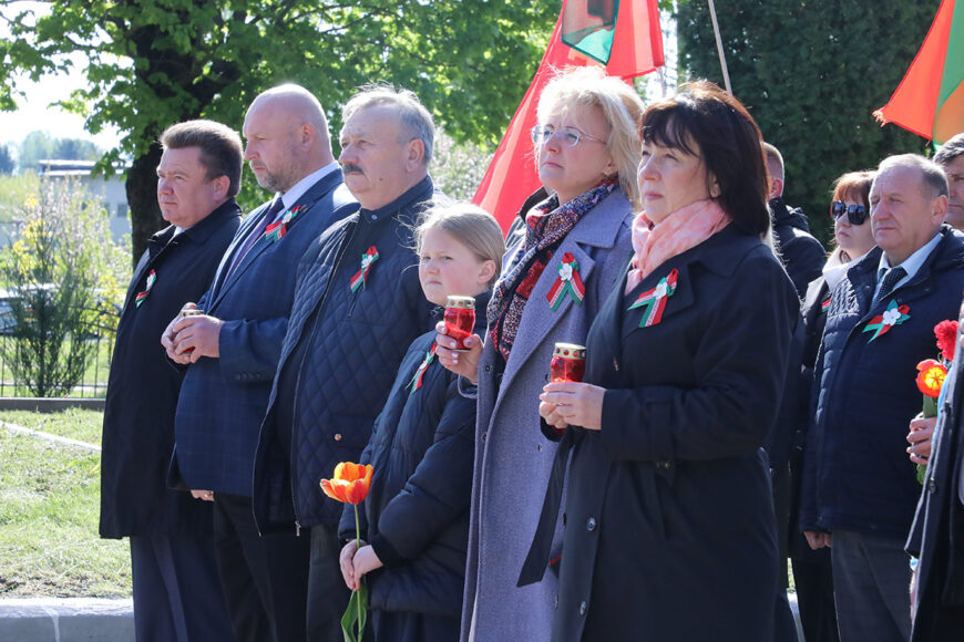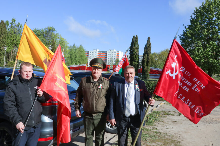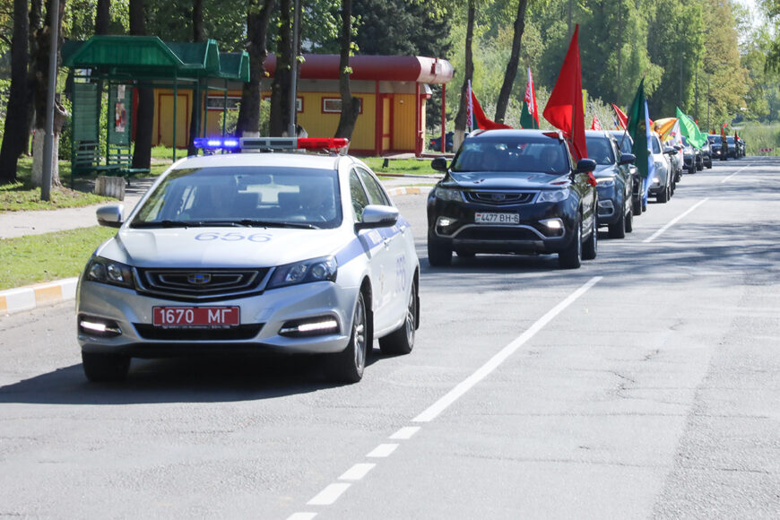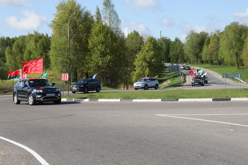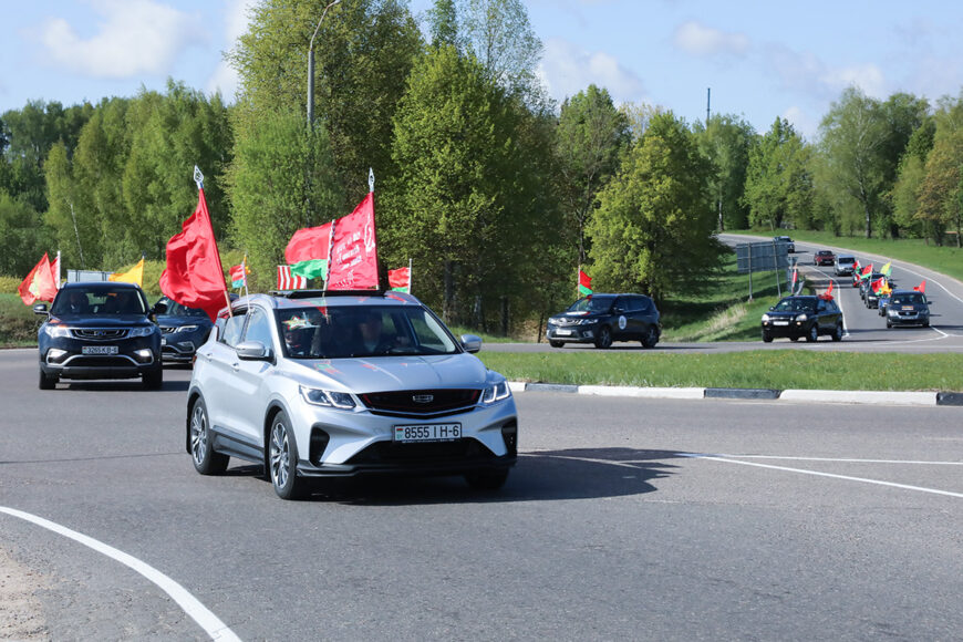 Десятки машин отправились из Горок по трем маршрутам, чтобы охватить как можно больше населенных пунктов. На памятных местах, воинских захоронениях, братских могилах прошли митинги. Участники автопробега почтили память минутой молчания погибших в годы Великой Отечественной войны, возложили гирлянды и цветы.