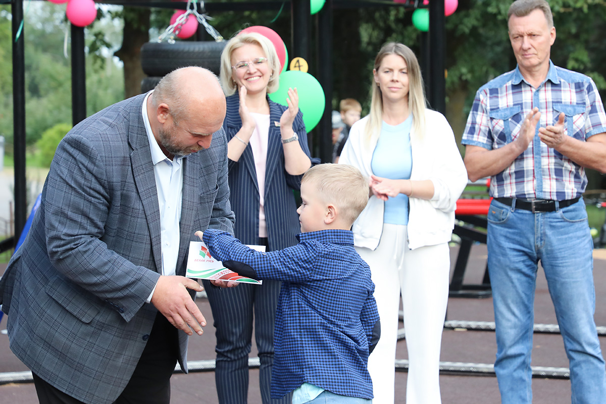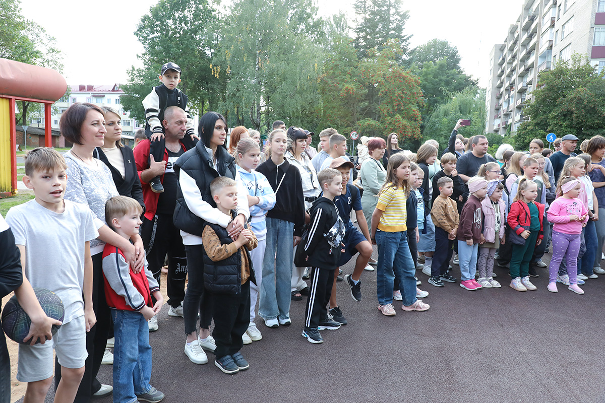 Председатель Горецкого районного Совета депутатов Максим Потапенко выступил с приветственным словом: «Горки — первый город в Республике Беларусь вступил на путь реализации проекта «Здоровые города». И этот проект успешно развивается у нас. Город становится краше, симпатичнее. Появляется больше новых игровых и спортивных объектов на наших улицах, дворах. Ведь с поддержкой государства за последние 3 года в городе созданы, построены и эксплуатируются 10 игровых площадок. Не будет лишним, если мы скажем спасибо Президентскому спортивному клубу, который стал инициатором строительства таких спортивных площадок по всей Беларуси».
