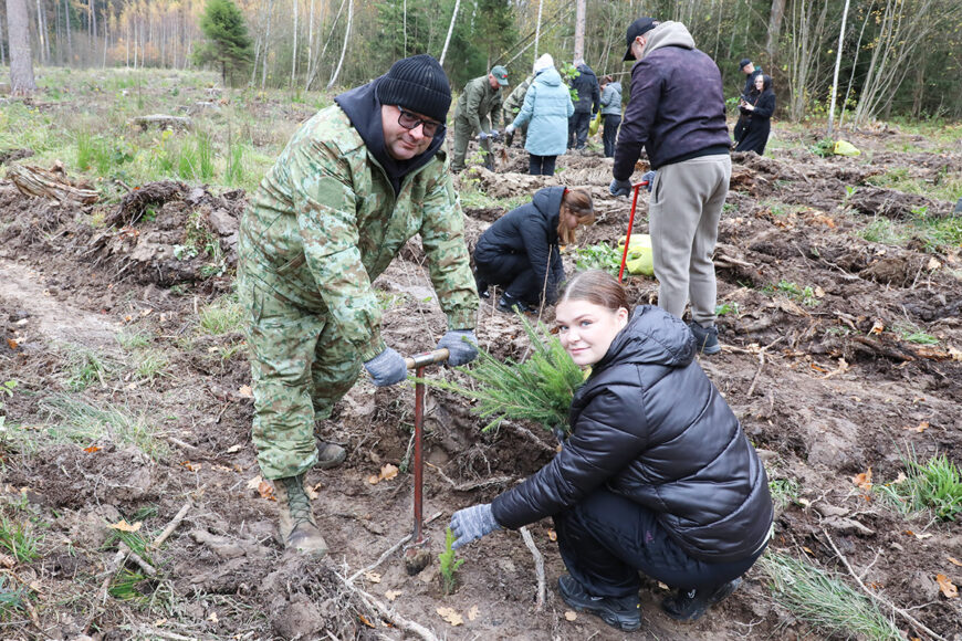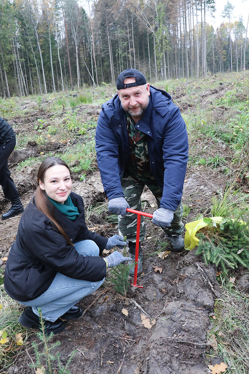 Посадка саженцев ели и ольхи производилась на территории Добрянского лесничества около деревни Сахаровка. Работники лесного хозяйства рассказали и показали группе добровольцев технику посадки растений, а также охотно ответили на возникающие вопросы.