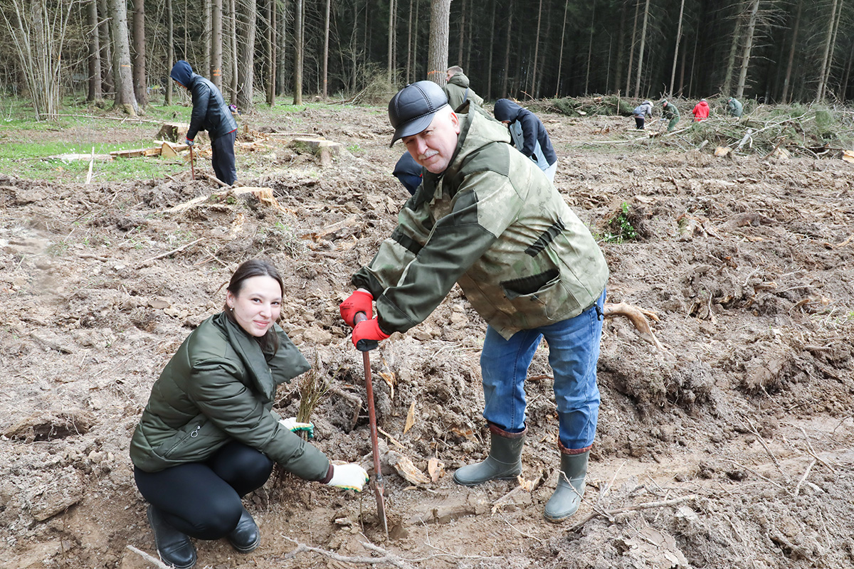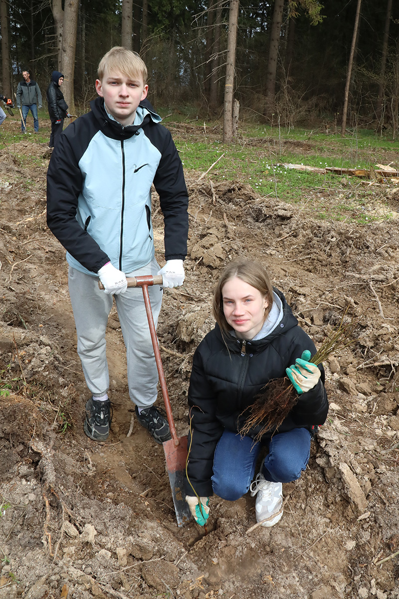 Руководство района и молодые специалисты протянули руку помощи природе, высадив дуб и бук около агрогородка Сава