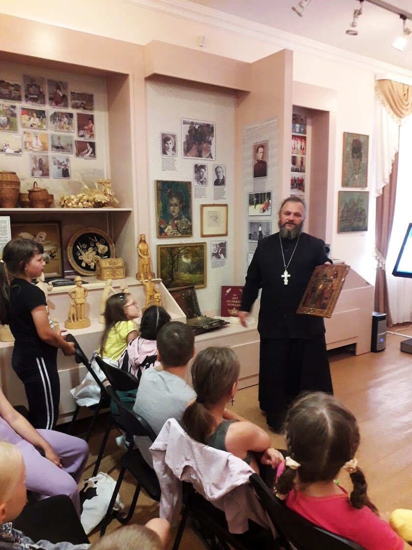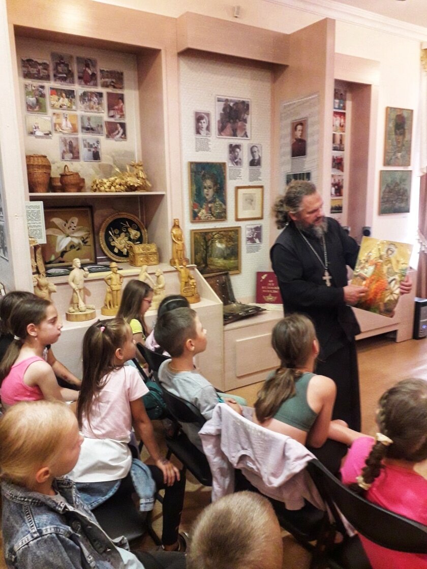 В Горецком районном историко-этнографическом музее прошло музейное занятие «Что мы знаем об иконе» с учащимися детского летнего лагеря «Позитив» СШ № 4 г. Горки. Дети познакомились с понятием «икона», особенностями ее написания, с основными образами православных икон: Спасителя Иисуса Христа, Пресвятой Богородицы, ангелов, святых угодников Божиих и т. д.