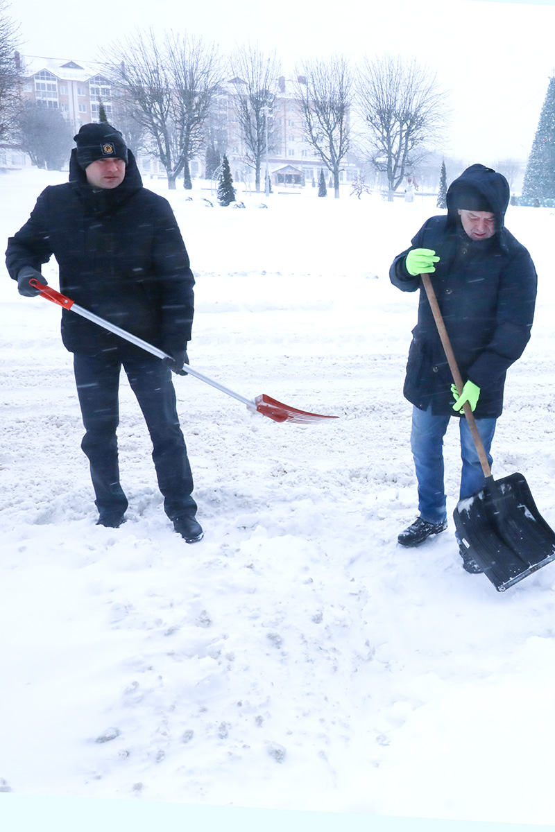 Мужской трудовой десант Горецкого райисполкома во главе с председателем Николаем Орлёнком вышел на помощь коммунальной службе