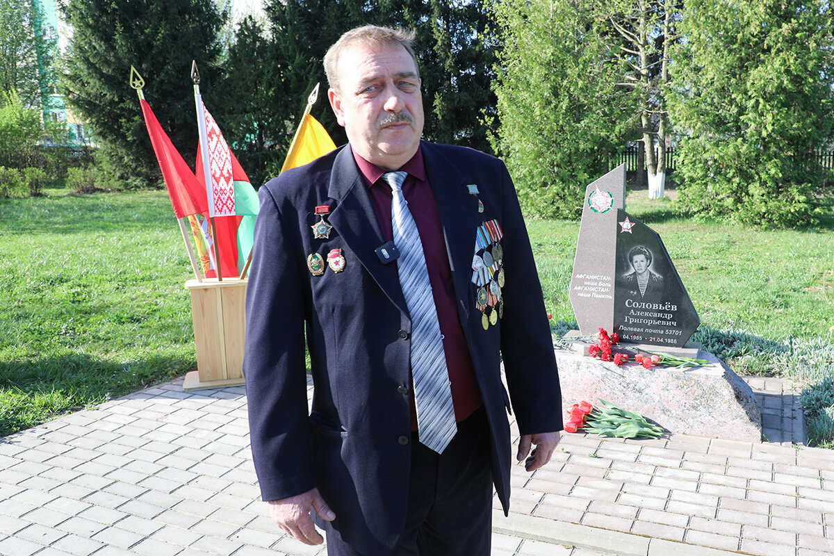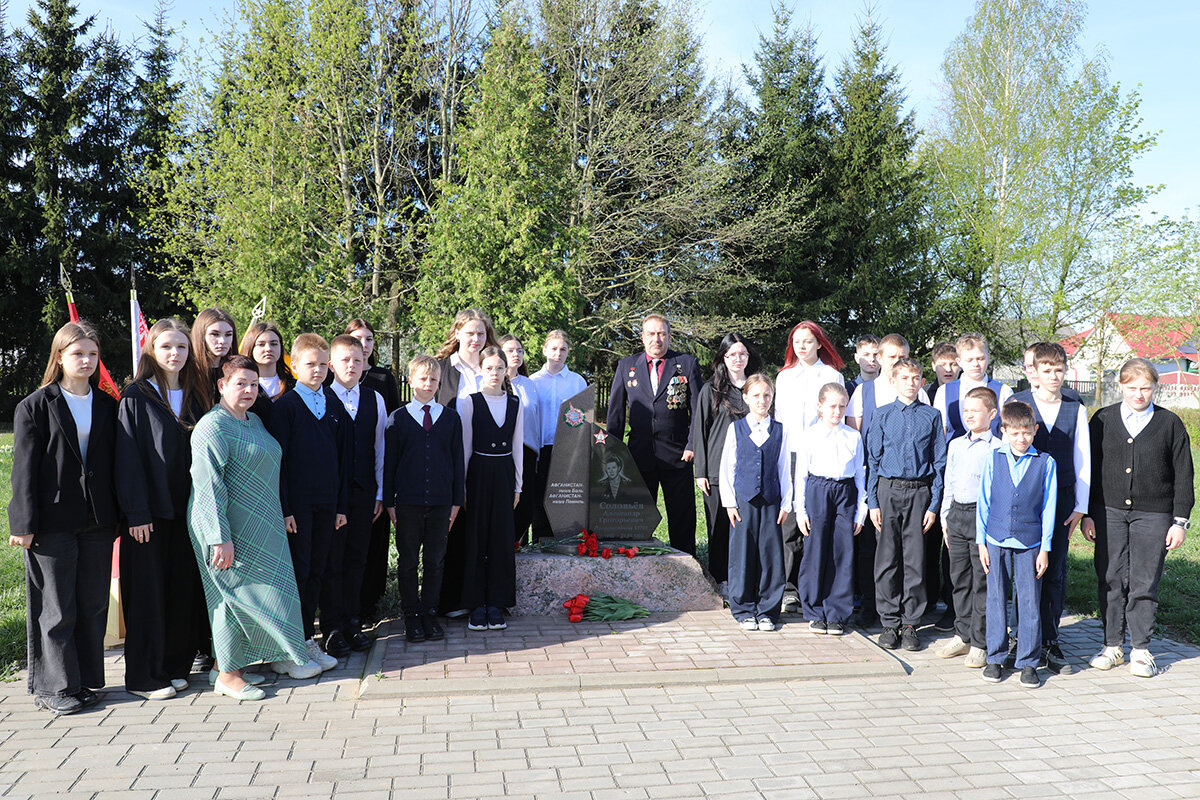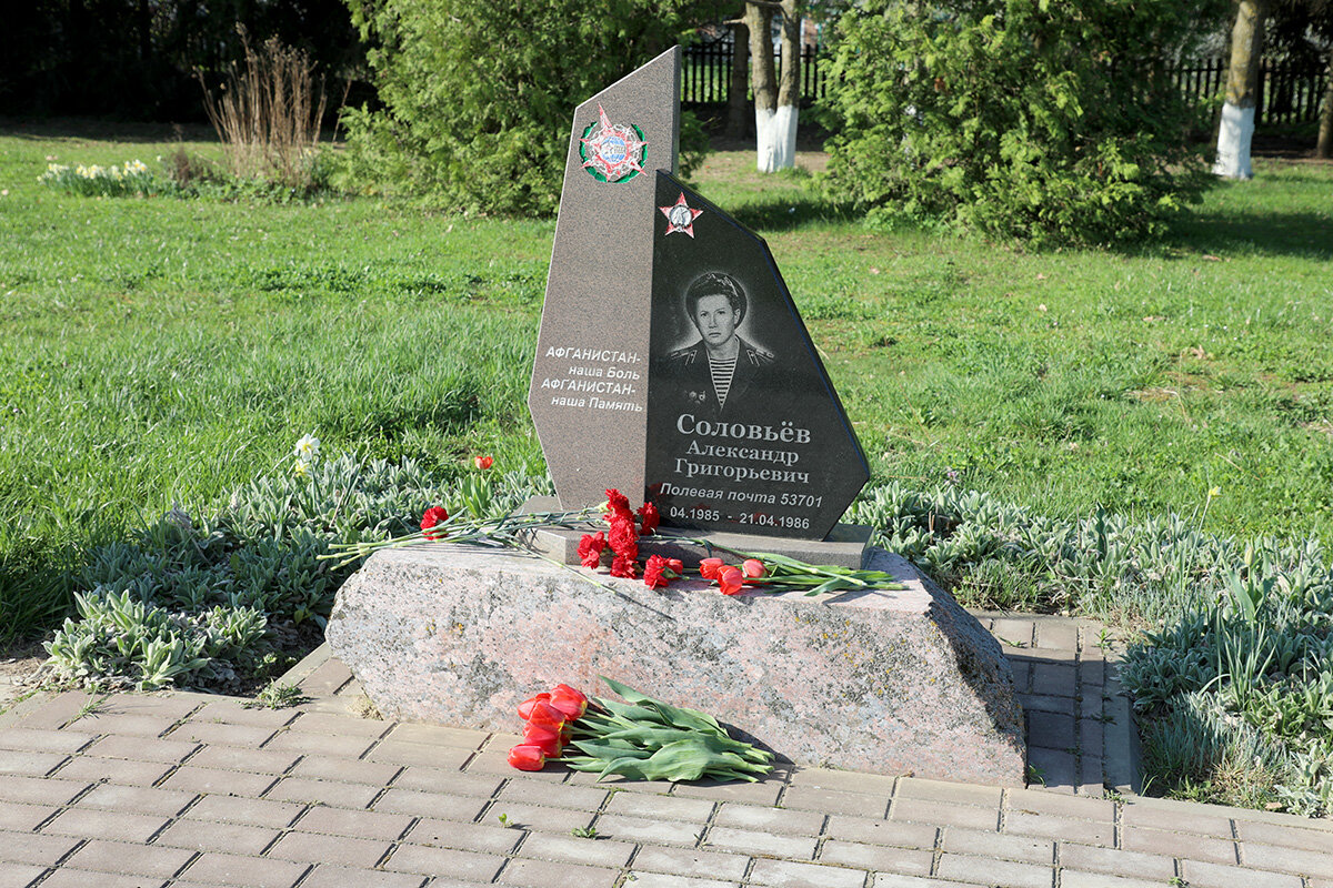 У памятного знака воину-интернационалисту Александру Соловьеву, выпускнику СШ № 3 города, расположенного на территории этой школы, участники открытого лично-командного первенства по стрельбе из пневматической винтовки среди школ района возложили цветы и почтили память героя войны в Афганистане