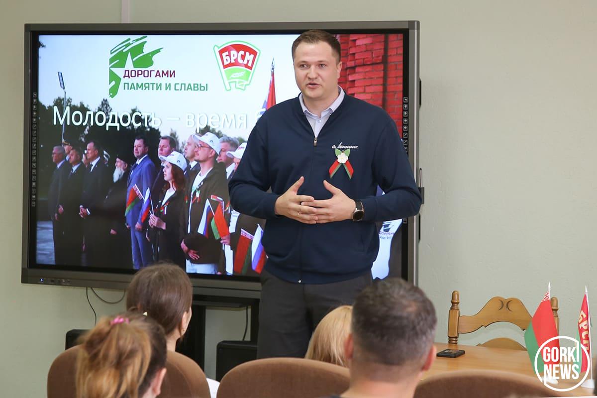 Аудиторию приветствовал первый секретарь РК БРСМ Сергей Сивуха, рассказал об уникальности Горецкого района, его богатой истории и традициях, призвал к диалогу, поделиться впечатлениями от пребывания в нашем городе.