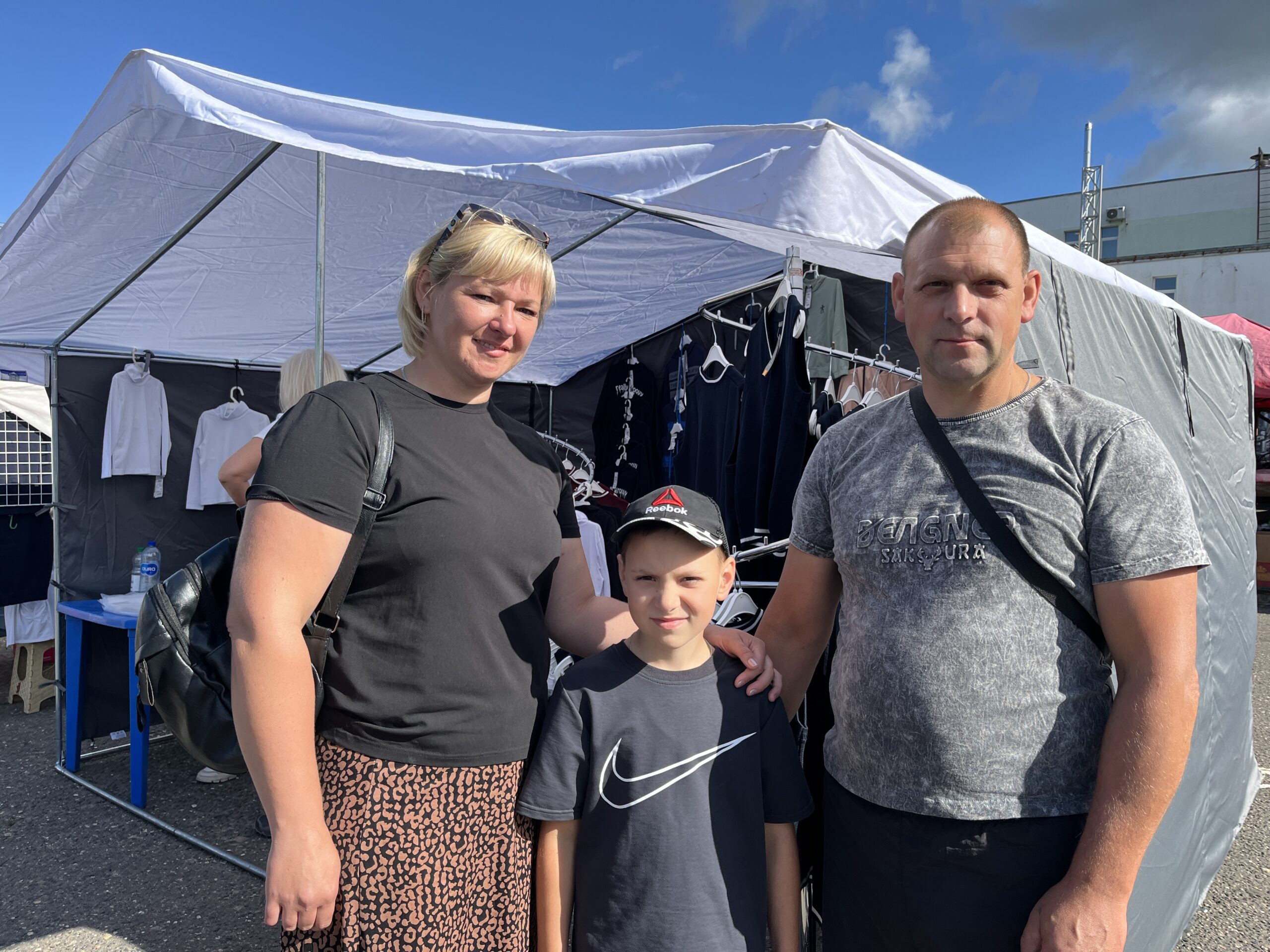 Среди покупателей была и многодетная семья. Выбирали жилетку Кириллу Мозырко. Мальчуган рассказал, что вместе с мамой Еленой и папой Алексеем специально приехали на рынок за жилеткой, которая необходима для создания делового стиля. Паренек признался, что, конечно, ему больше нравится ходить в футболках, но в школе нужно быть в форме.