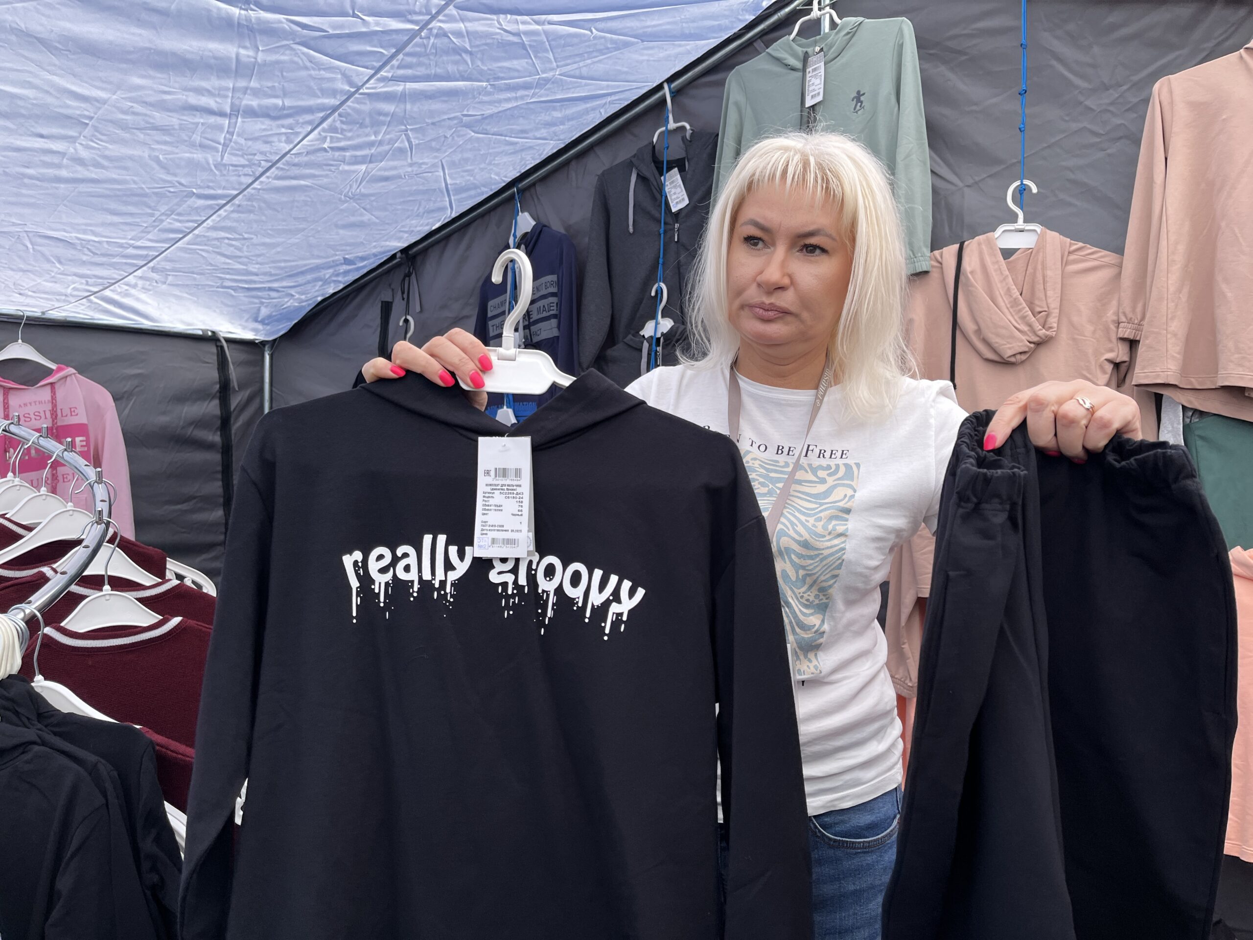 Порадовала горецких покупателей точка от магазина «Полесье». Пинский трикотаж привезли из торгового объекта Могилева. Как отметила продавец Оксана Яцкова, в продаже есть школьные жилетки. Они реализуются с 30% скидкой. На костюмы спортивные и водолазки действует 20% снижение цены.