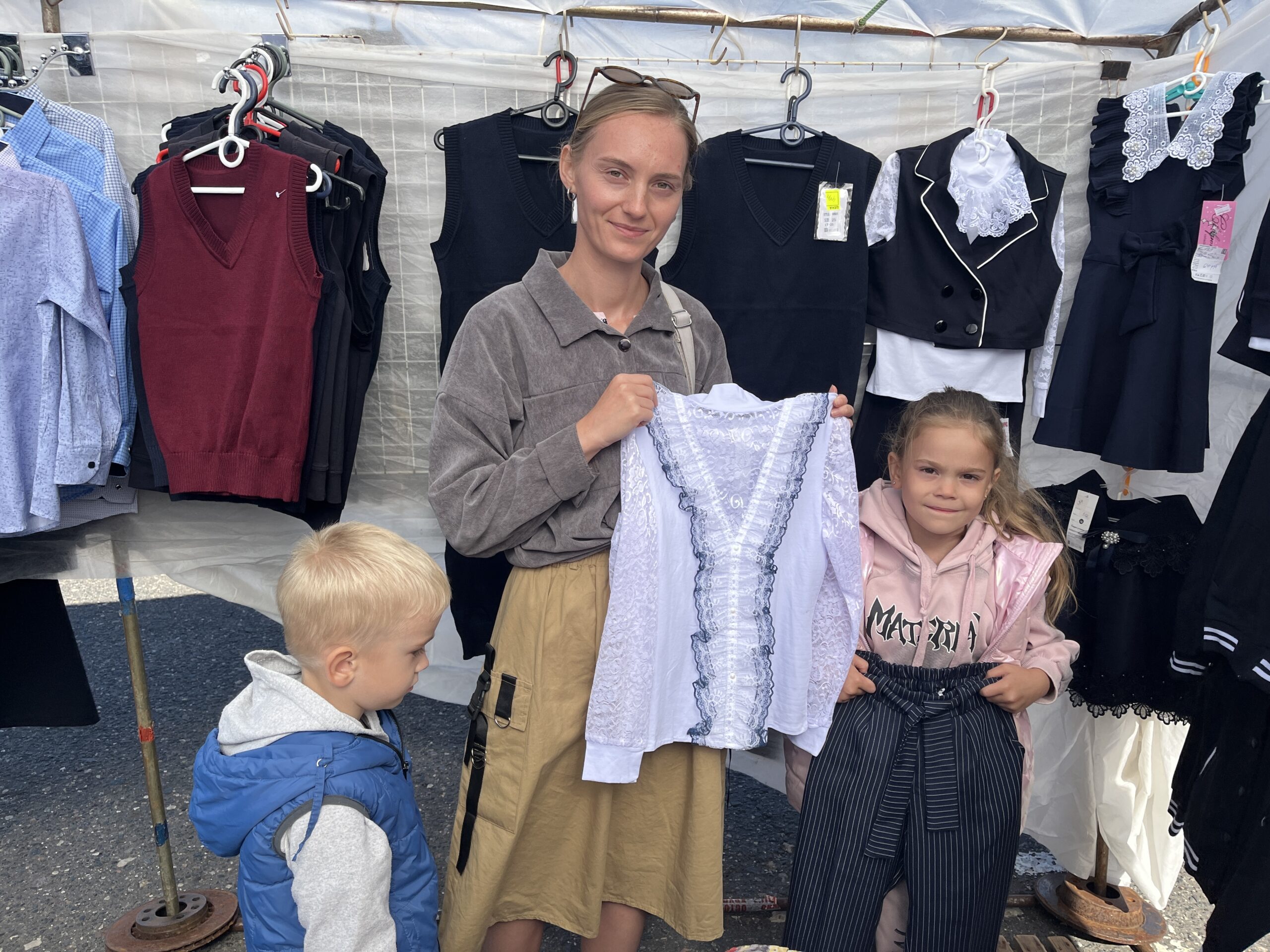 Старшие дети Дима и Максим, которым 19 и 16 лет, учатся в академии и в колледже. Вместе с Кириллом в школу пойдет и Настя. Она в этом году первоклашка. Кстати, жилетка ей досталась от брата, который за лето вытянулся, поэтому семья и приехала на рынок за обновкой.