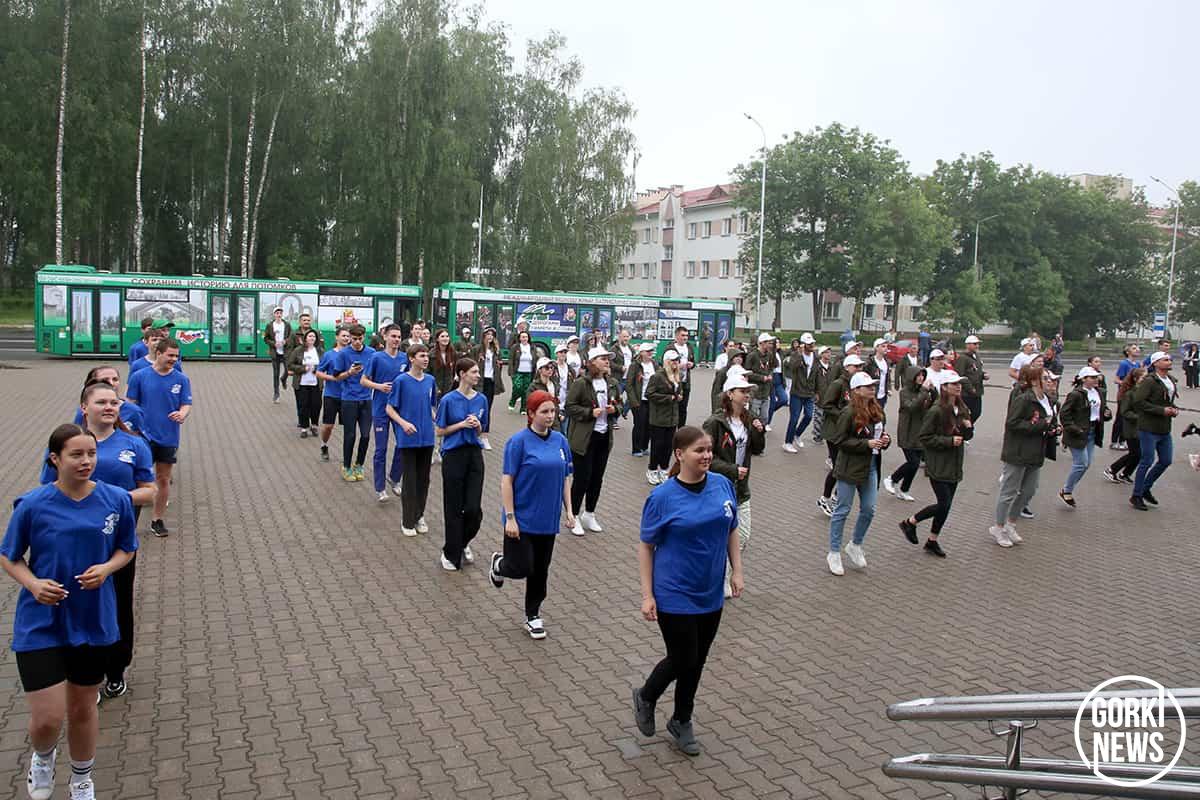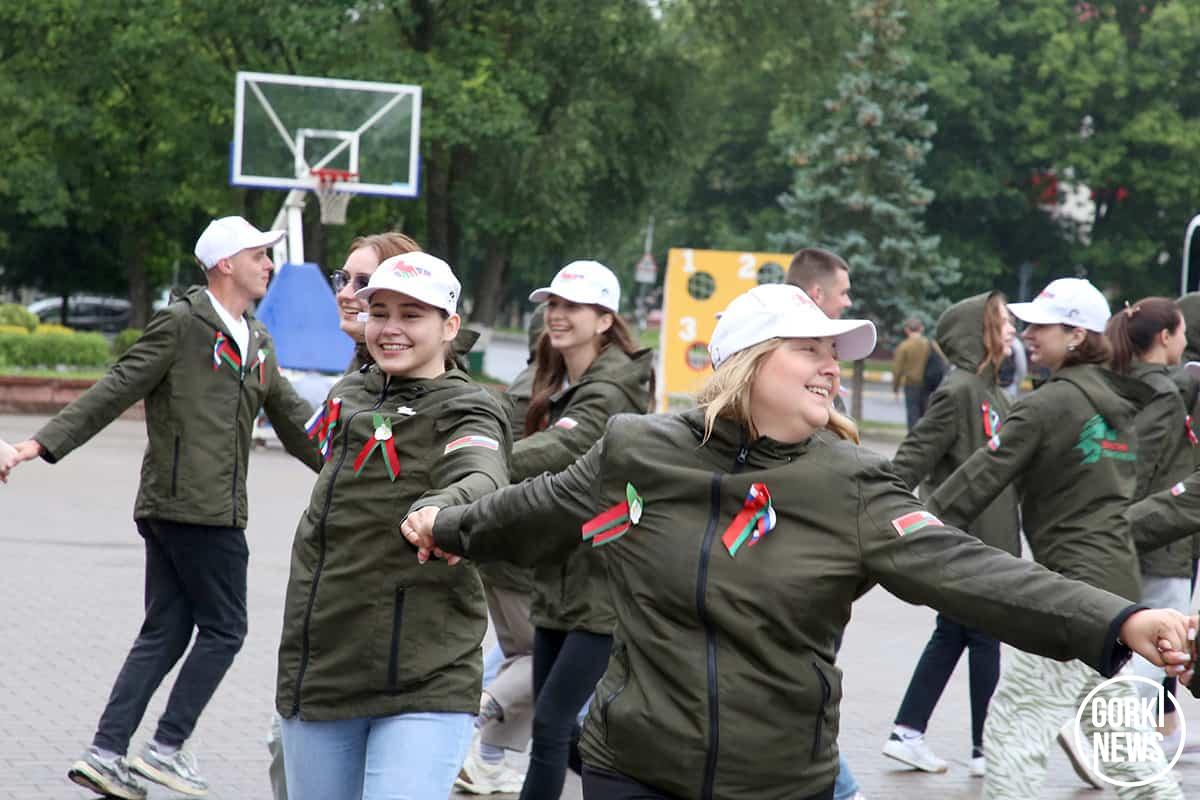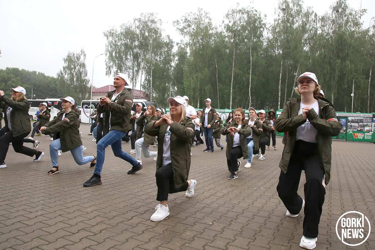 На площади перед ДК БГСХА для участников проекта «Дорогами Памяти и Славы» организовали утреннюю гимнастику, которая обычно проходит на нашем большом празднике здоровья в рамках проекта «Горки – здоровый город». Мероприятие стало настоящим зарядом энергии и позитива для молодежи