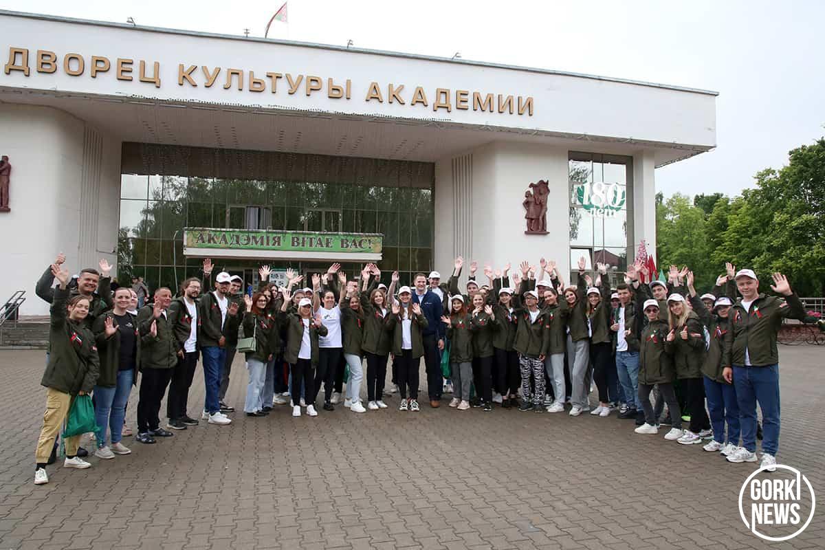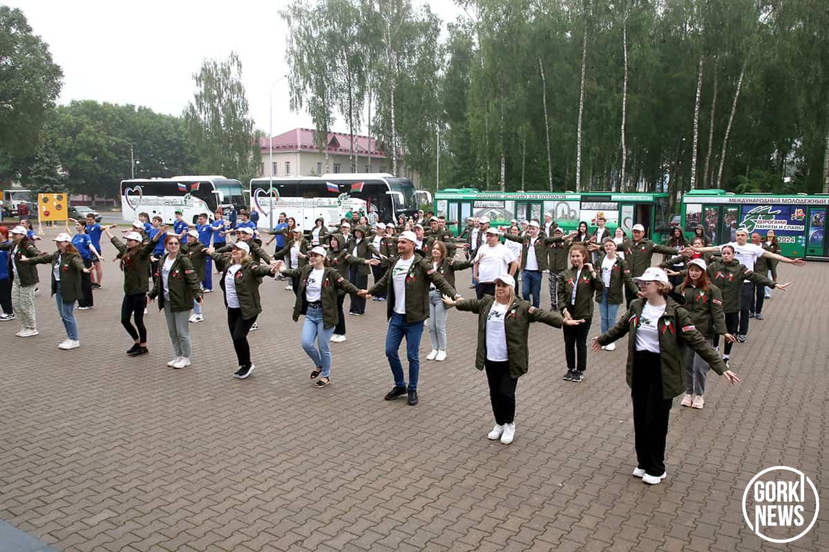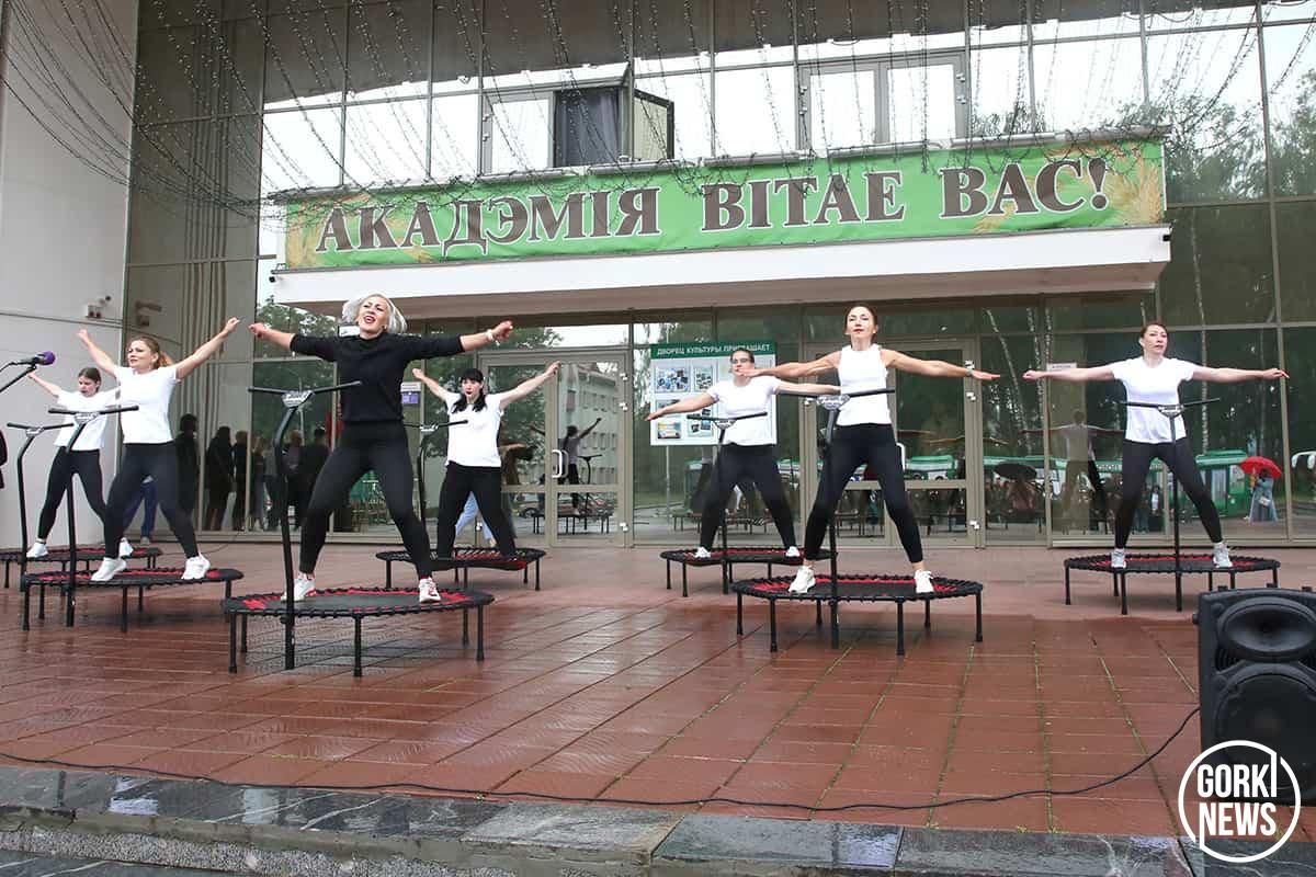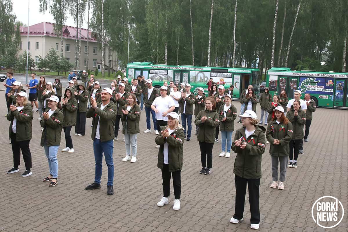 На площади перед ДК БГСХА для участников проекта «Дорогами Памяти и Славы» организовали утреннюю гимнастику, которая обычно проходит на нашем большом празднике здоровья в рамках проекта «Горки – здоровый город». Мероприятие стало настоящим зарядом энергии и позитива для молодежи