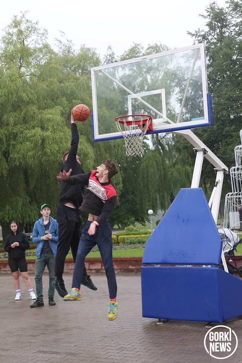 К сожалению, из-за дождя пришлось отменить показательное вступление слэм-данка и мастер-класс от лучшего данкера Беларуси, двукратного чемпиона Европы по слэм-данку Сергея Мосура. Продолжил показательные выступления мастер спорта в упражнении Белорусский гиревой жим Сергей Марченко.