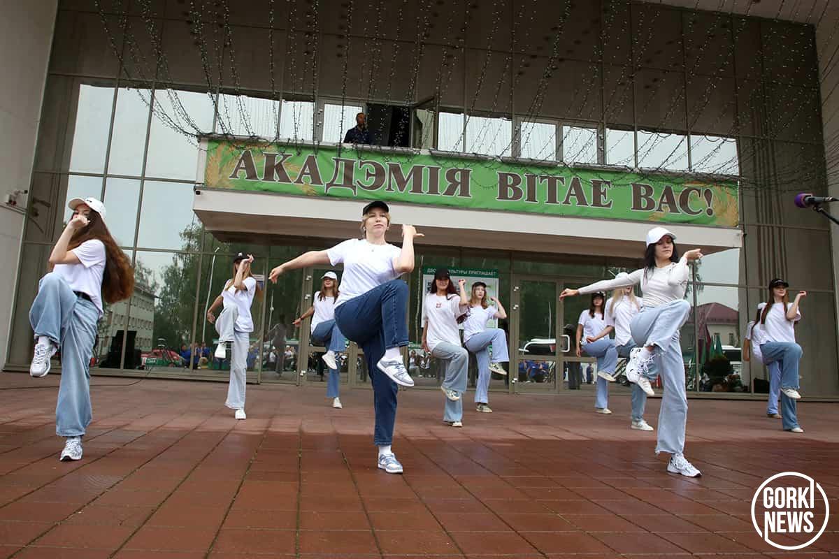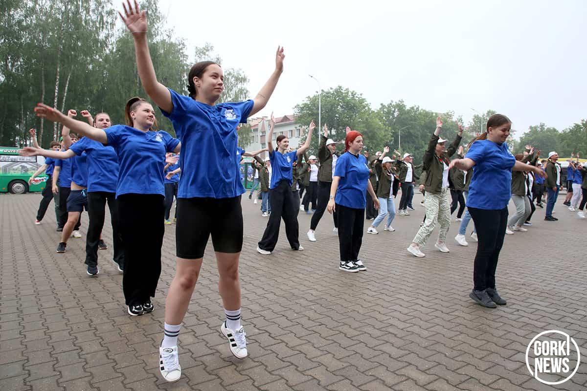 На площади перед ДК БГСХА для участников проекта «Дорогами Памяти и Славы» организовали утреннюю гимнастику, которая обычно проходит на нашем большом празднике здоровья в рамках проекта «Горки – здоровый город». Мероприятие стало настоящим зарядом энергии и позитива для молодежи