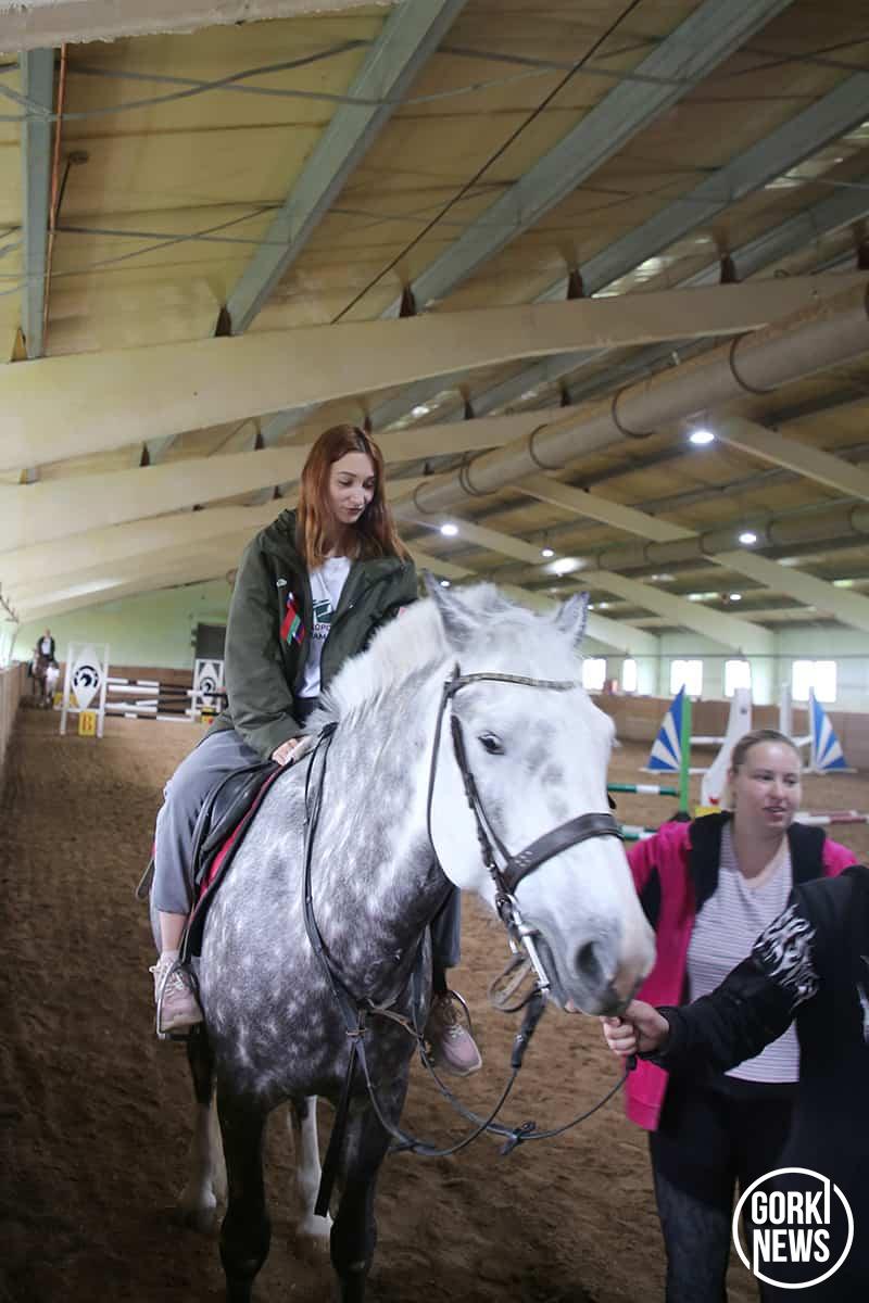 Еще одним ярким моментом этого дня для молодых людей стало посещение конноспортивной школы, где участники познакомились с миром лошадей и спортсменов. Эмоции и впечатления были непередаваемы. Ребята с удовольствием общались с лошадьми, пробовали управлять ими, испытали азарт и радость от скорости и свободы движения.