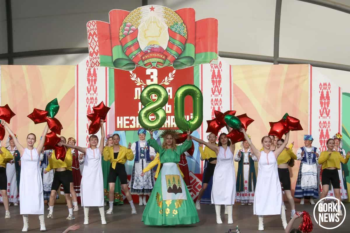 Главное торжественное мероприятие в честь Дня Независимости Республики Беларусь и 80-й годовщины освобождения Беларуси от немецко-фашистских захватчиков собрало жителей и гостей города и района в большом зале летнего амфитеатра, где на его сцене вниманию зрителей была представлена яркая замечательная праздничная концертная программа «Квітней, Радзіма, пад блакітным небам!»
