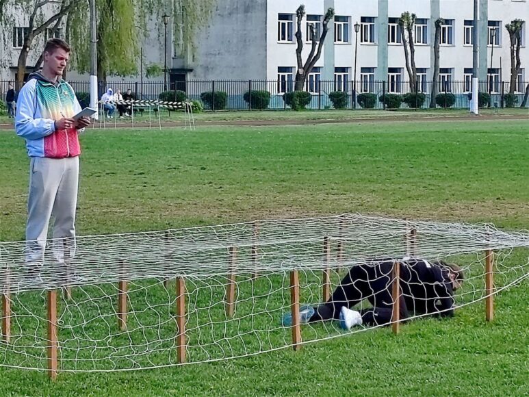 Далее студентов ждали испытания военизированной эстафеты. В ходе соревнования ребята проявили высокий уровень подготовки и командного духа. Бег на различные расстояния, метание гранаты, стрельба из пневматической винтовки по мишеням, подтягивания на турнике, перенос пострадавшего, смотр строя и его проход с песней – каждый этап требовал от участников не только хорошей физической подготовки, но и сплоченности.
