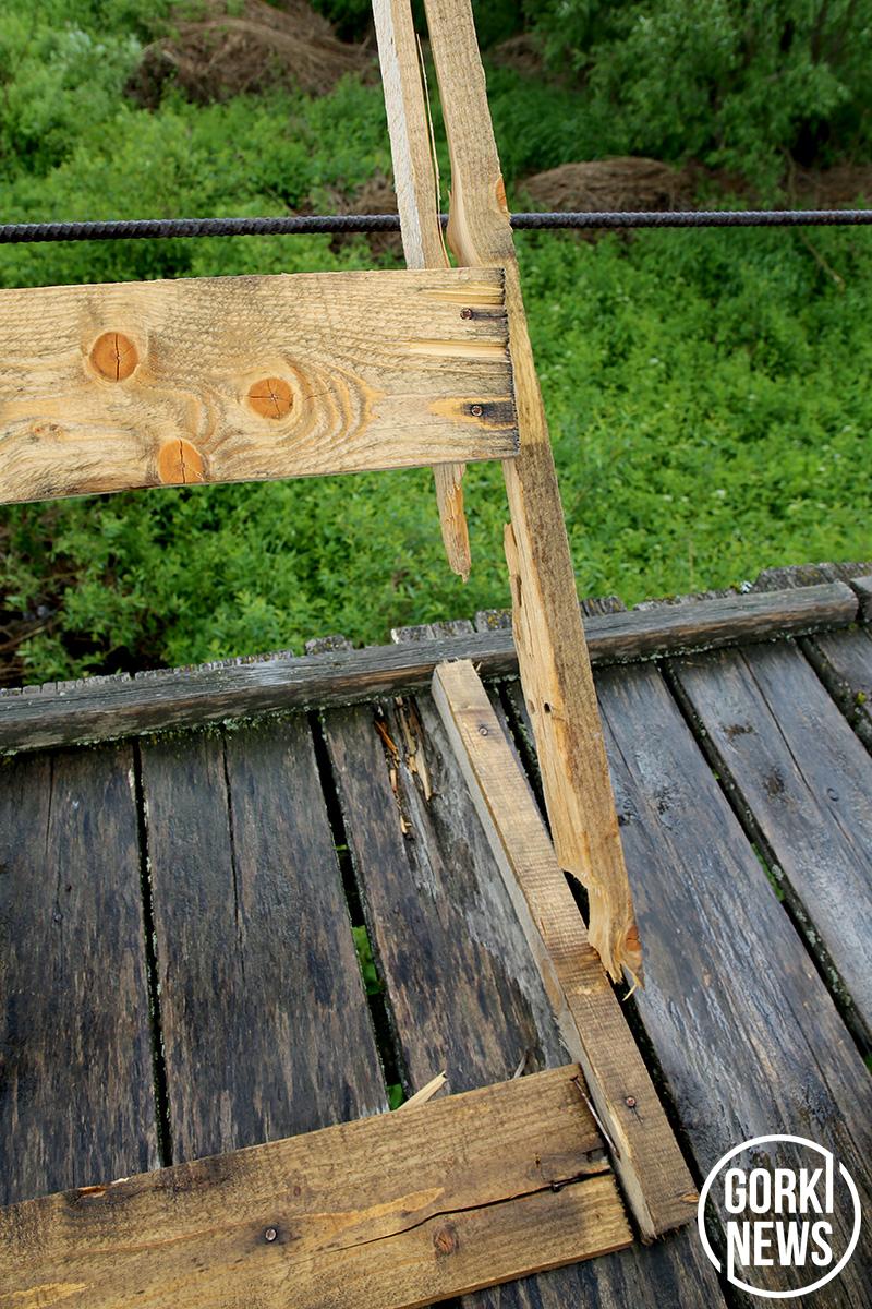 И вот снова этот объект жизнеобеспечения оказался в центре общественного внимания. Взволнованные жители улицы Первомайской перед выходными позвонили в редакцию чуть ли не со слезами и рассказали, что их мост начали ломать: «Не можем сами никак спасти, помогите нам…». По мосту снова стали ездить на мотоблоках. Уже снесли-расщепили несколько досок барьерных конструкций, которые установили коммунальщики.