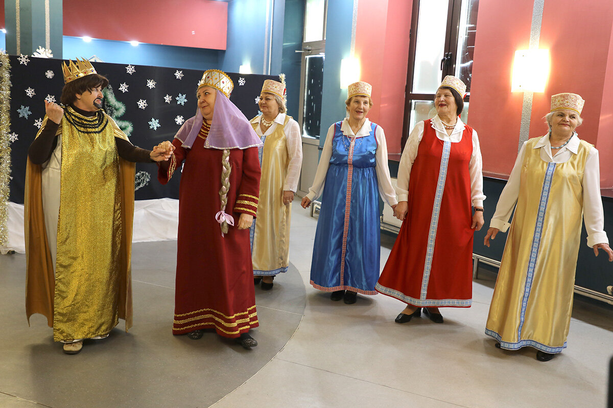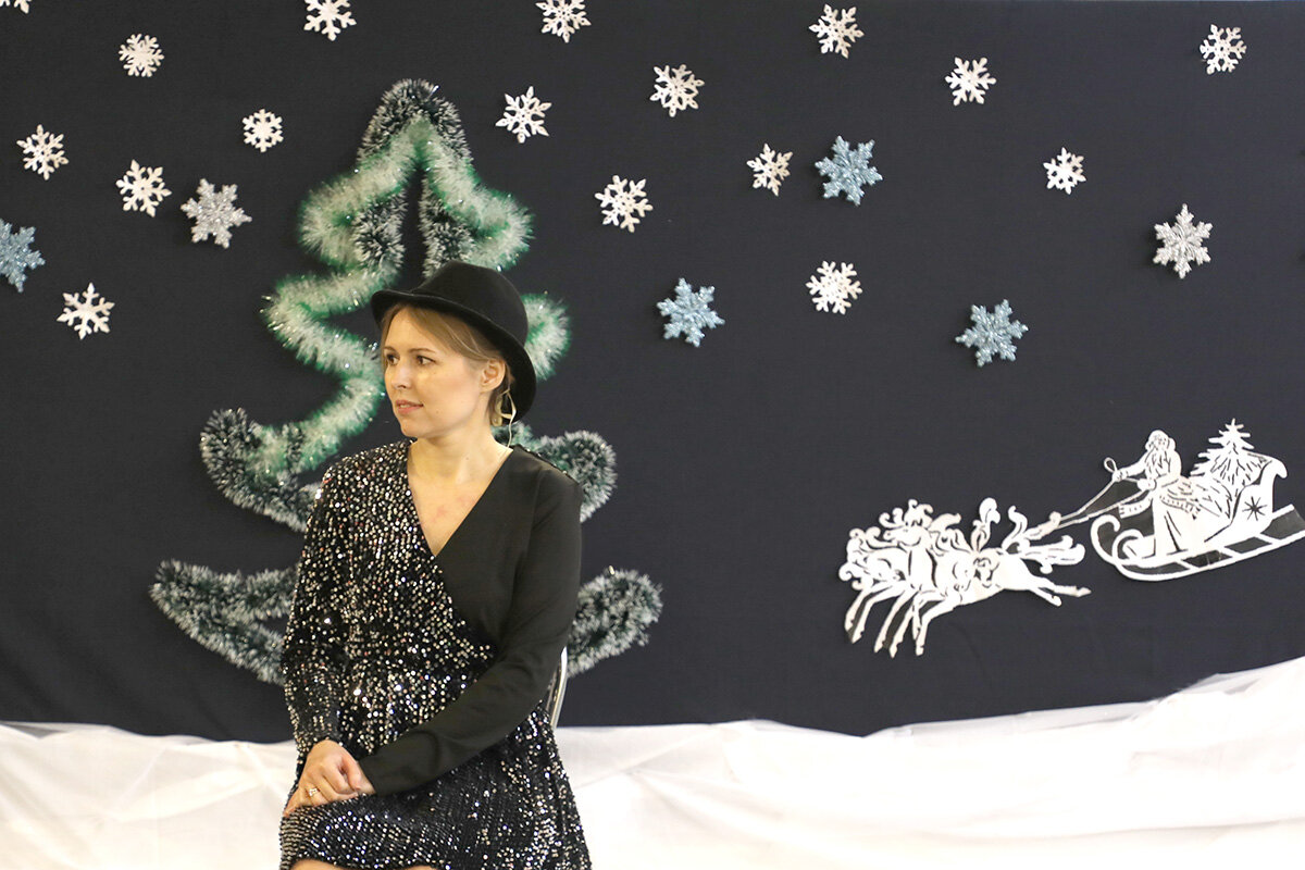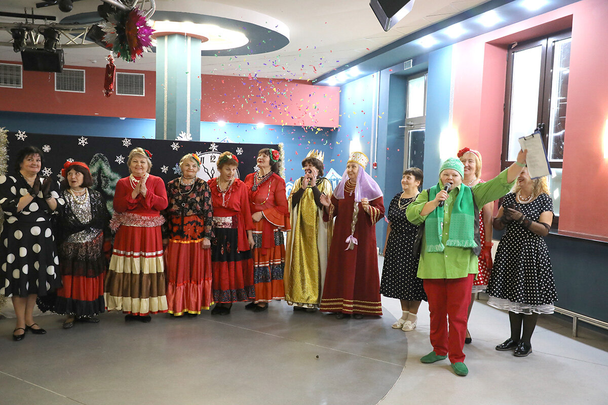 Гостей радушно встречали организаторы, а участники самодеятельности с энтузиазмом обсуждали детали предстоящего концерта. Зал был оформлен в стиле ретро, с яркими гирляндами и елками, что создавало ощущение погружения в любимые фильмы.