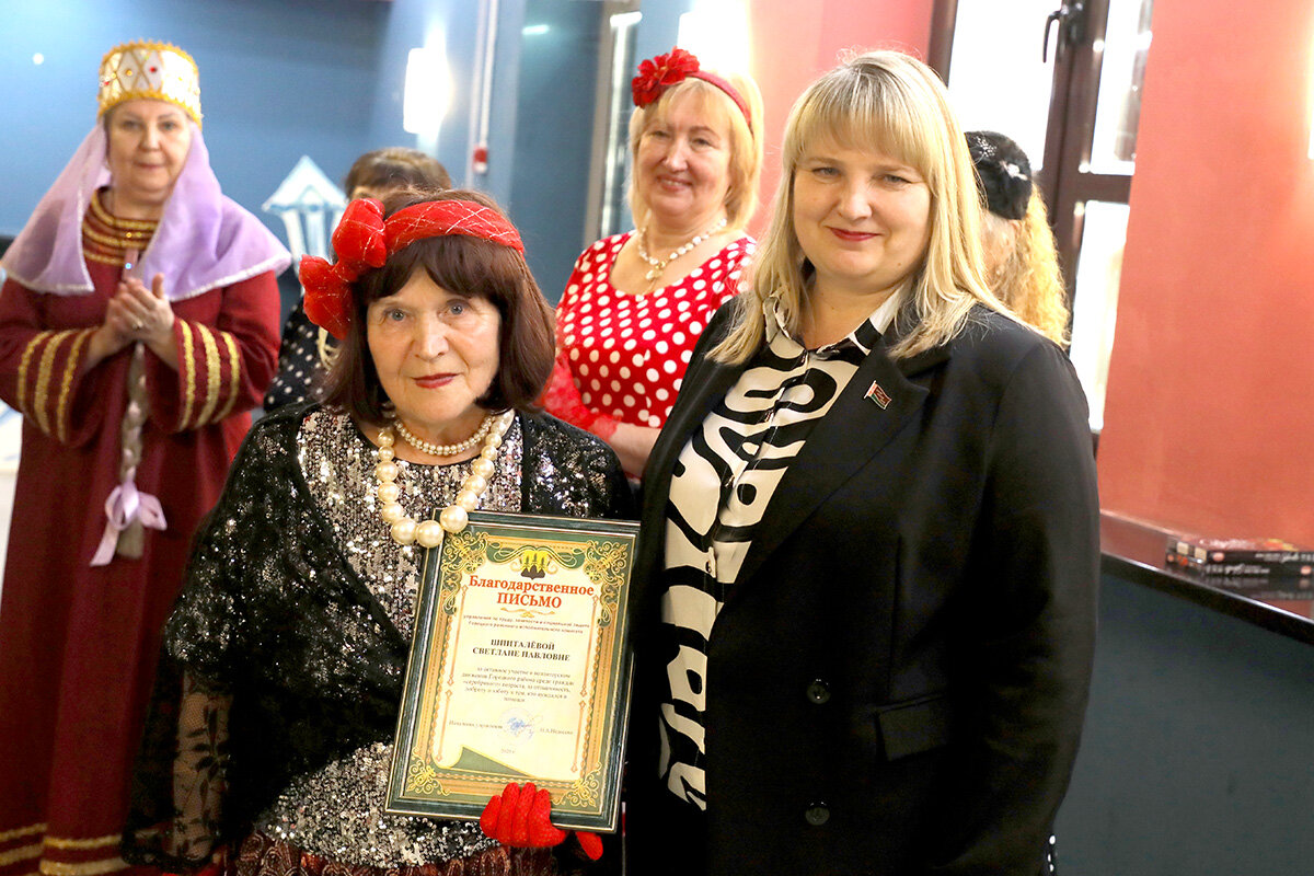 В завершение праздника были награждены самые активные участники мероприятий серебряного возраста. Подарки вручали председатель районной организации ОО «Белорусский союз женщин» Наталья Ковалева и начальник управления по труду, занятости и социальной защите райисполкома Наталья Недосеко.