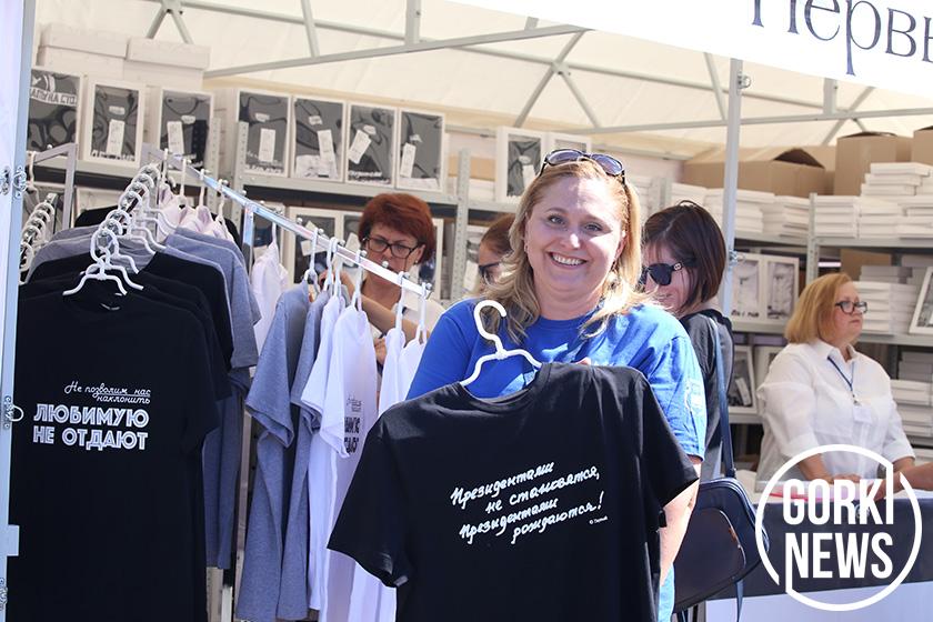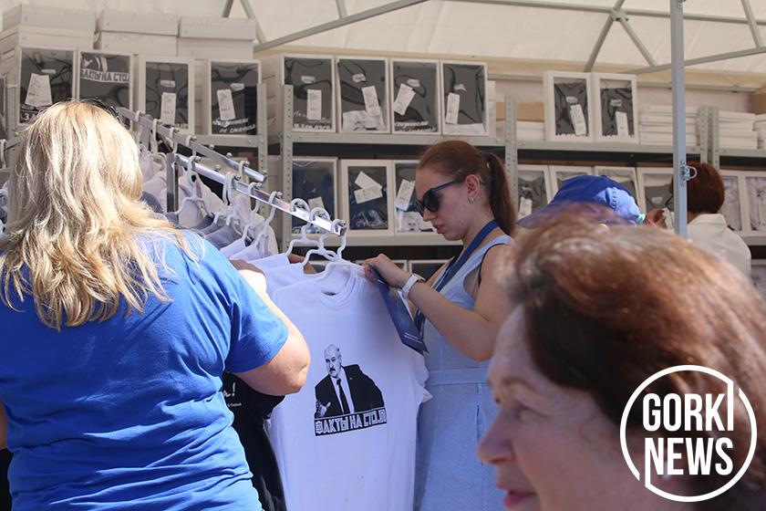 Впервые в Горках продают мерч Первого. К слову, уже с самого утра в этой палатке было многолюдно.