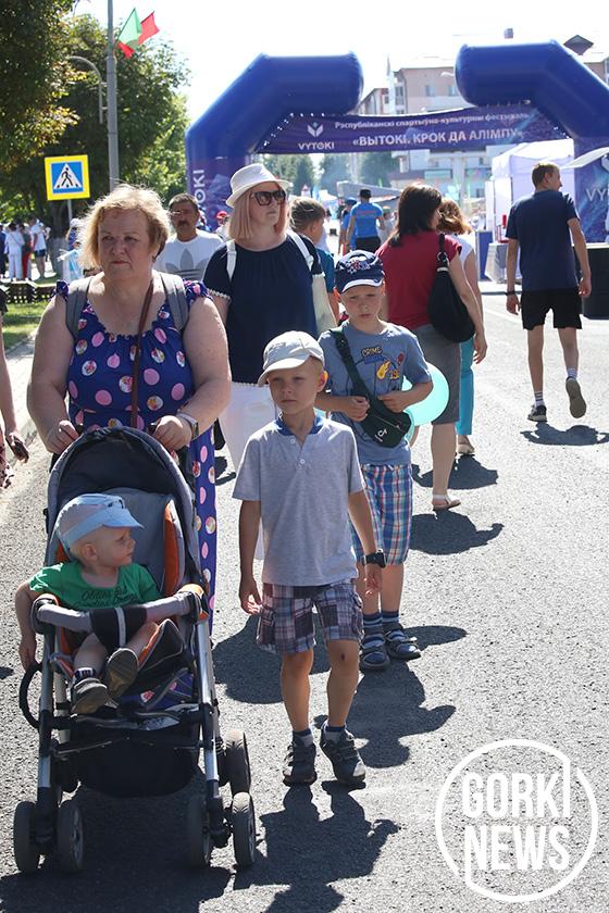 В Горках продолжается спортивно-культурный фестиваль «Вытокi. Крок да Алiмпу». Второй день, посвященный спорту, начался с благотворительного забега «Километры добра». В нем приняли участие десятки любителей бега. Среди них были дети, представители трудовых коллективов, общественных организаций. На такой же динамичной ноте праздник продолжается до сих пор.