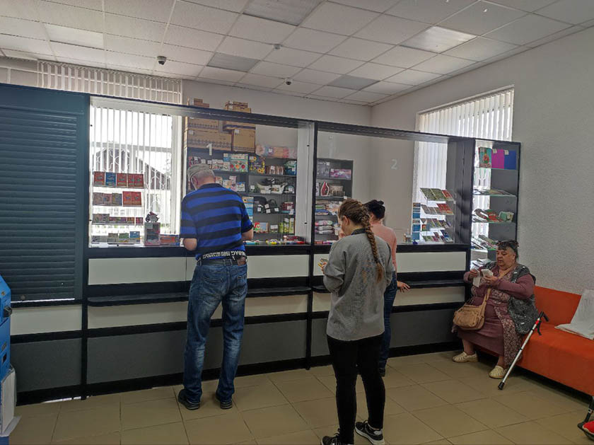 Еще одной альтернативой является отделение почтовой связи, где можно осуществить аналогичные операции с такой же комиссией. Находится оно в шаговой доступности, помещение просторное, работает два окна.