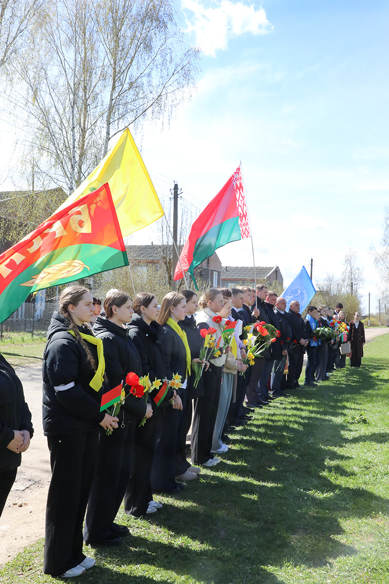 В нем приняли участие председатель райисполкома Николай Орлёнок, депутат Палаты представителей Национального собрания Республики Беларусь, первый секретарь ЦК ОО «БРСМ» Владимир Павловский, жители деревни, учащиеся педколледжа и школьники Ленинской СШ.