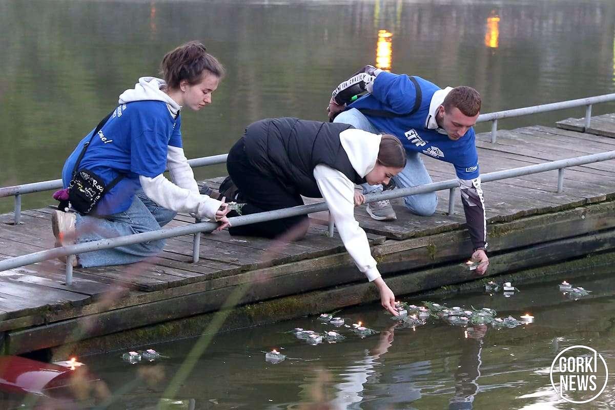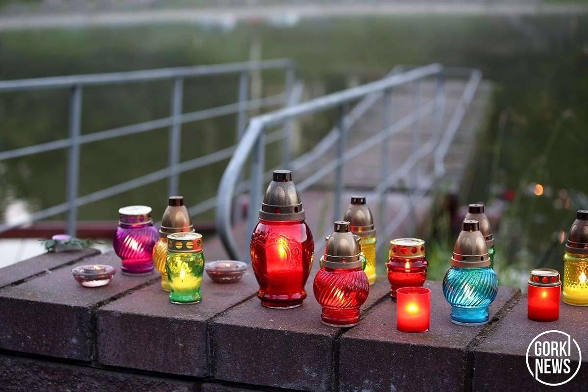 Участники акции «Звон скорби» почтили память погибших минутой молчания. В память о них на воду опустили горящие свечи и кораблики с именами погибших земляков.