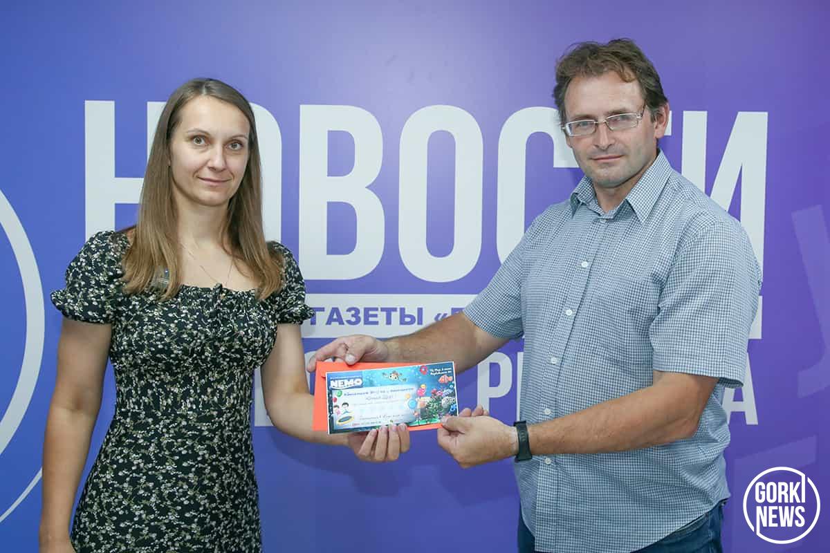 Отец шестерых детей Андрей Волков получил нужный подарок от детской игровой комнаты «NEMO» (@nemogorki): сертификат на 3 часа посещения ему вручила Екатерина Дерюжкова.