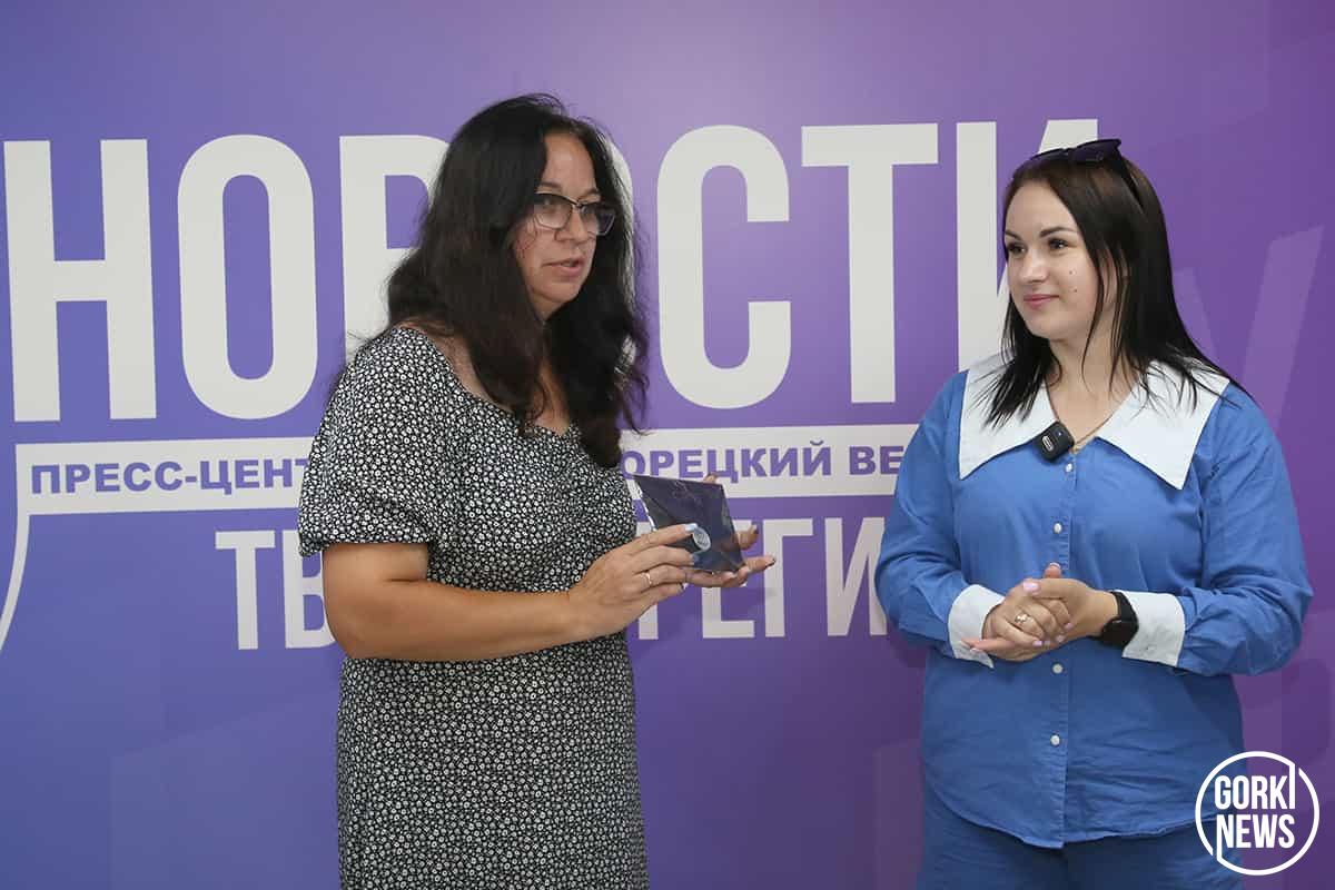 Сертификат на 30 рублей блогер Мария Копысова (@masha_pasta.pf), которая пришла вместе со своей маленькой доченькой Алисой передала Ларисе Кривицкой.