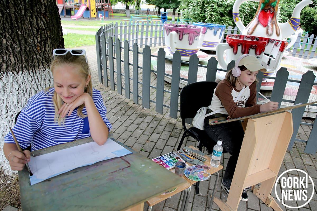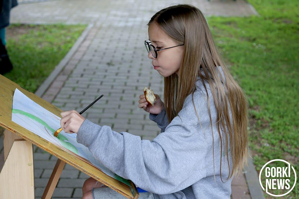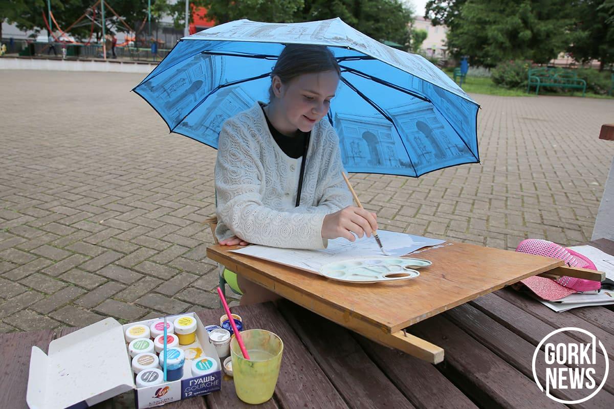 Накрапывающий июньский дождик ничуть не сбил творческий настрой юных художников, даже скорее привнес некую нотку озорных приключений в размеренные дни каникул.