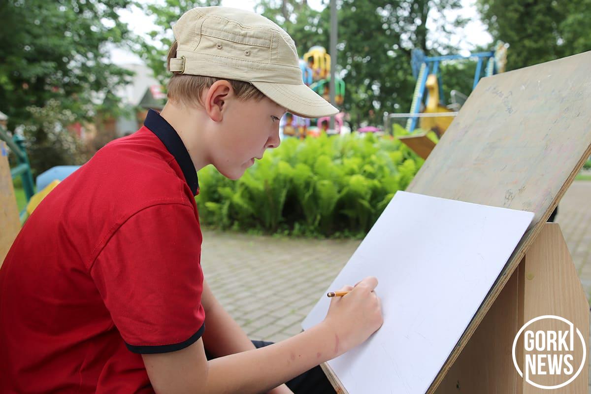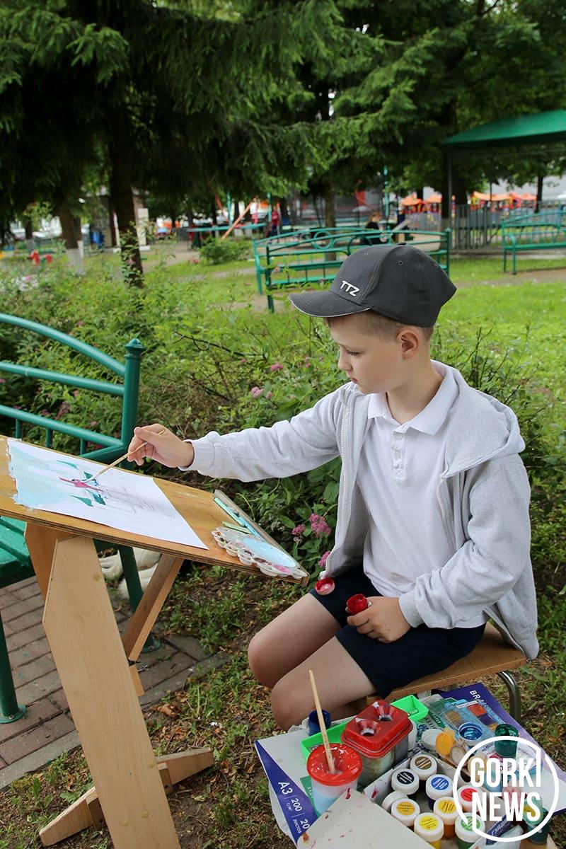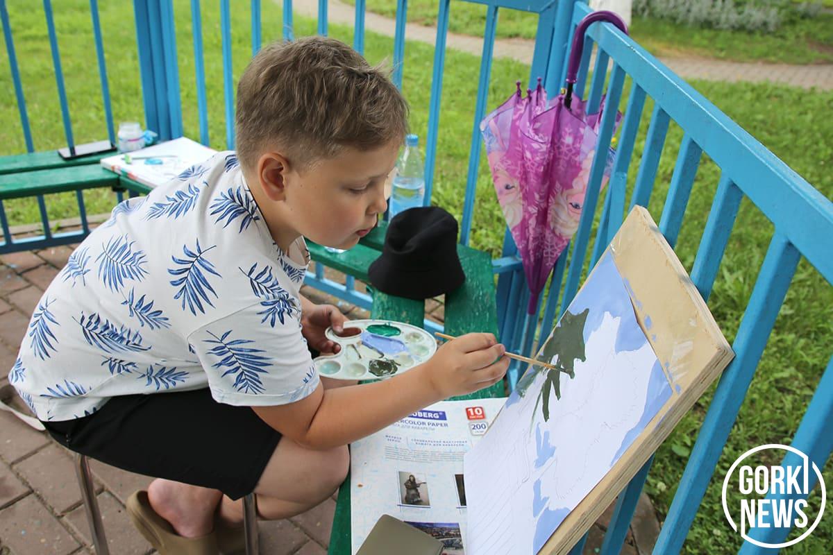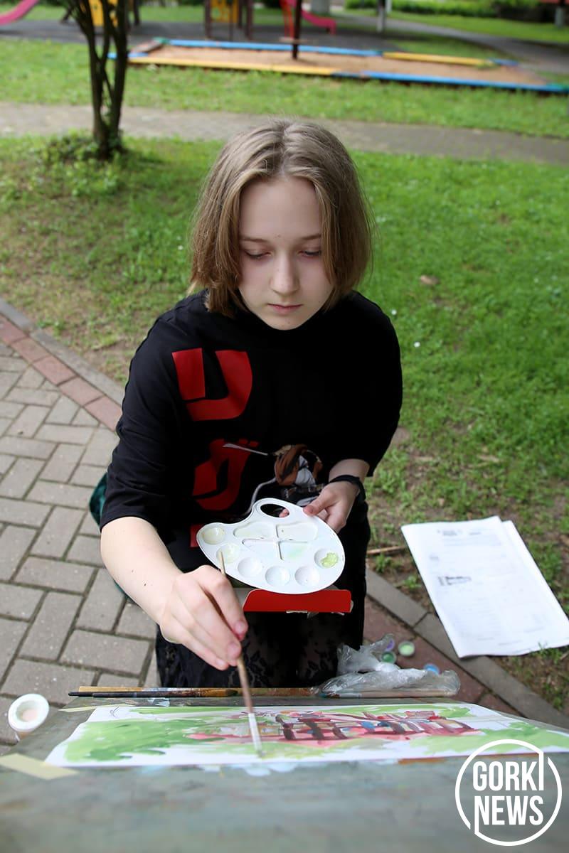 Накрапывающий июньский дождик ничуть не сбил творческий настрой юных художников, даже скорее привнес некую нотку озорных приключений в размеренные дни каникул.