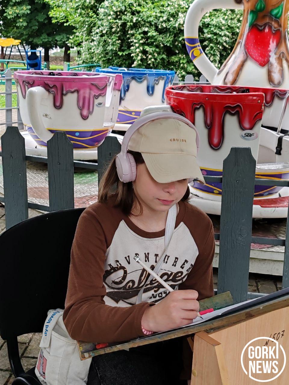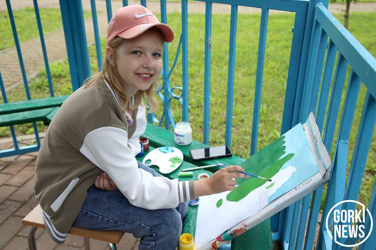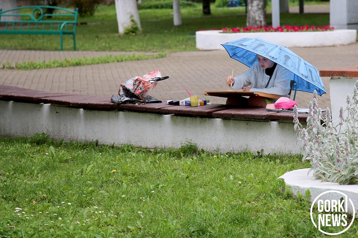 Накрапывающий июньский дождик ничуть не сбил творческий настрой юных художников, даже скорее привнес некую нотку озорных приключений в размеренные дни каникул.