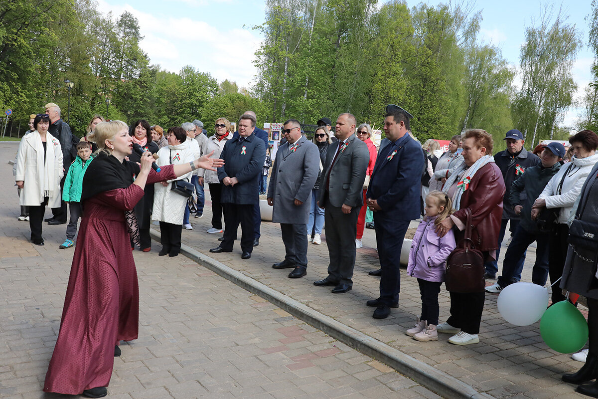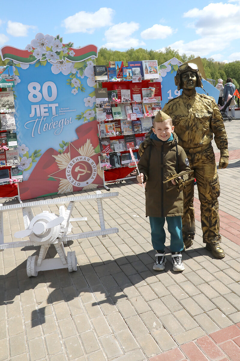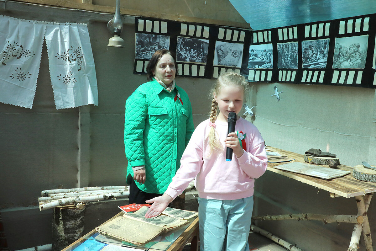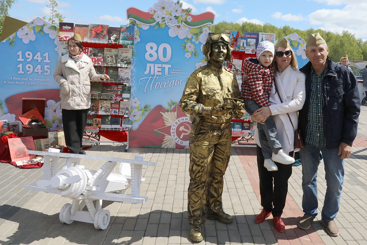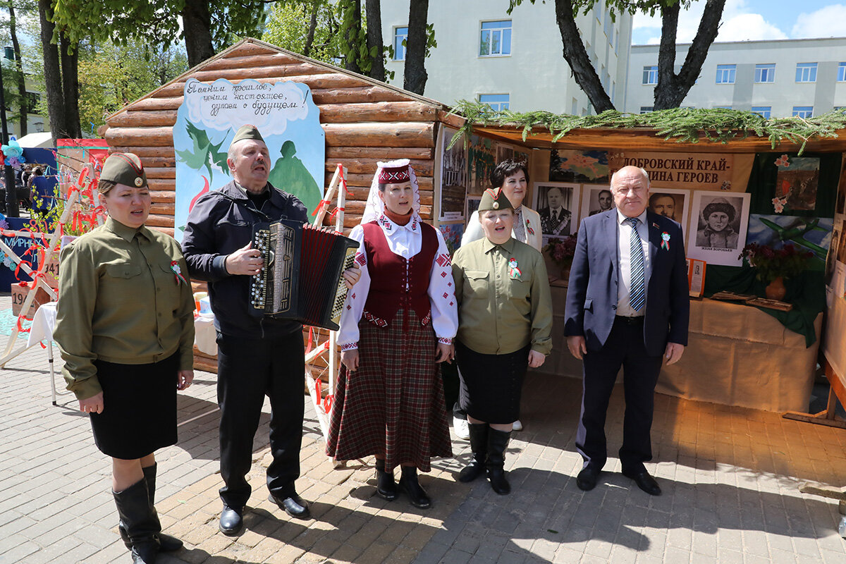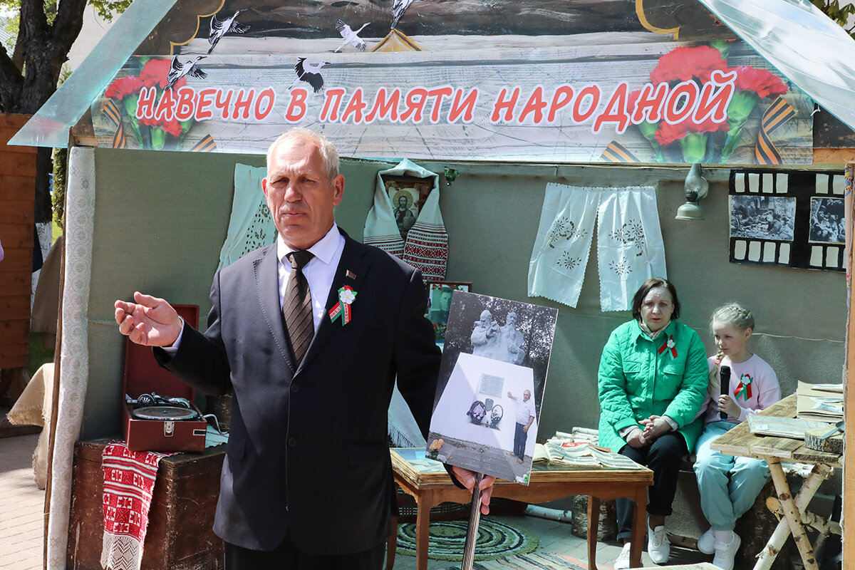 Присутствующие смогли окунуться в атмосферу тех лет благодаря военным площадкам, где играли и пели военные песни, были показаны фотографии тех лет, портреты героев горецкой земли, военная форма и вещи.