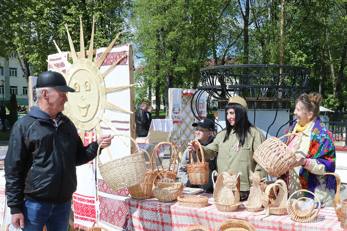 Весь день около летнего амфитеатра работает праздничная торговля, выставка-продажа изделий мастеров декоративно-прикладного искусства, книжная выставка и подворья организаций района.