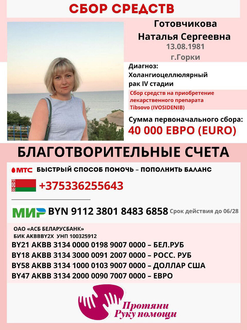 Поможем Наталье вместе! Молодой женщине из Горок требуется помощь в сборе средств на лечение