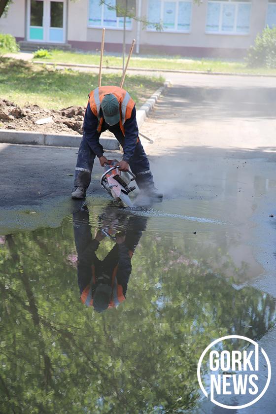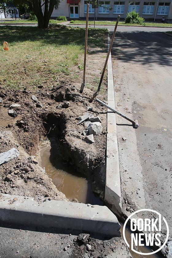 Максим Михайлович сказал, что в данный момент приняты меры, чтобы вода, скопившаяся на дворовой площадке, была выведена на газон. Для этого вырезаны штроба и борт. В ближайшее время будет решаться вопрос по устройству лотка для отвода поверхностных вод с территории.