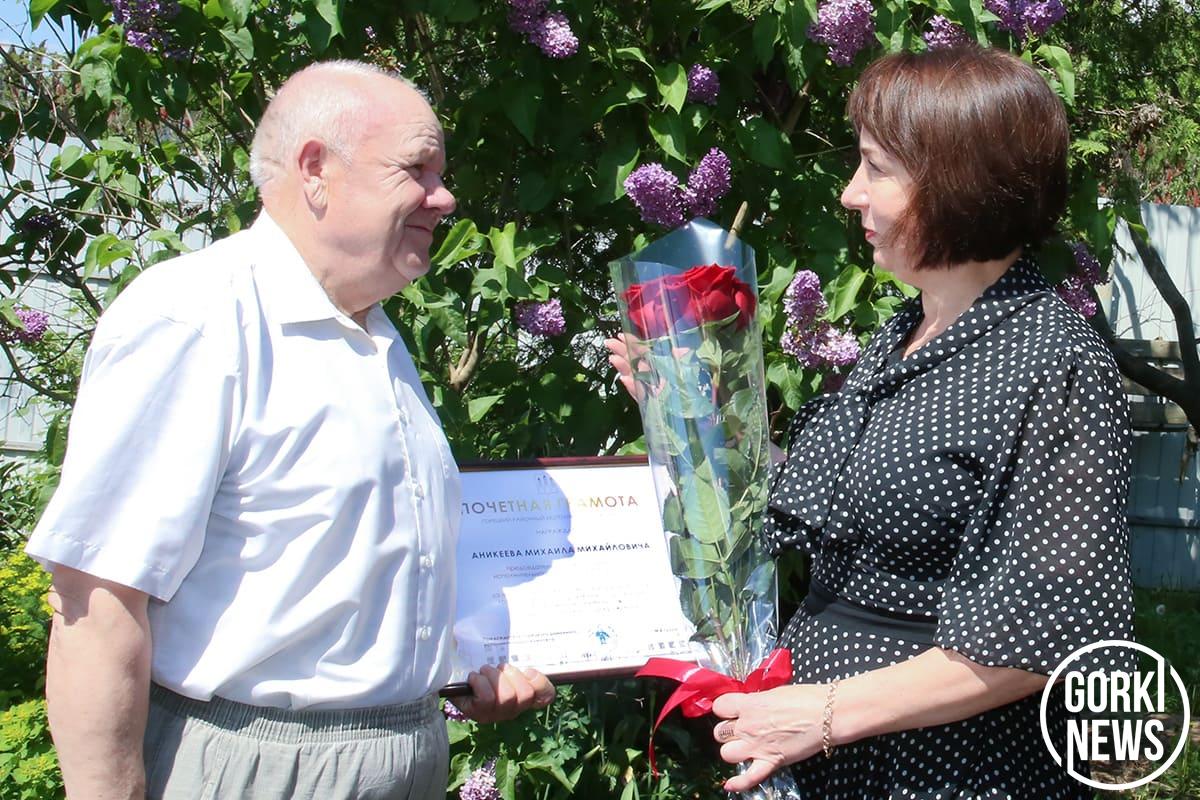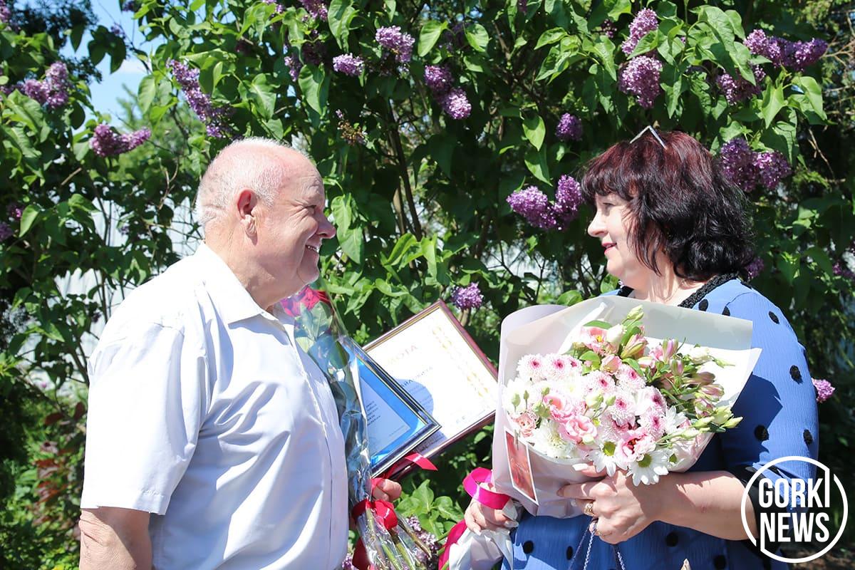 Юбиляр встретил делегацию поздравляющих в приподнятом настроении и бодром расположении духа. Красота ярких весенних цветов и благоухающей разноцветной сирени в живописном уголке двора стали отличным фоном для церемонии поздравления. Андрей Саланинка вручил юбиляру высшую награду органа районной власти – Почетную грамоту Горецкого райисполкома, а Наталья Николаевна – цветы и подарок, поблагодарив лично от себя за годы совместной работы, доброе человеческое отношение и мудрость как руководителя. Максим Потапенко с наилучшими пожеланиями здоровья передал Михаилу Михайловичу Благодарность райсовета депутатов. Елена Чаплыгина преподнесла цветы и подарок от райкома профсоюза работников АПК.