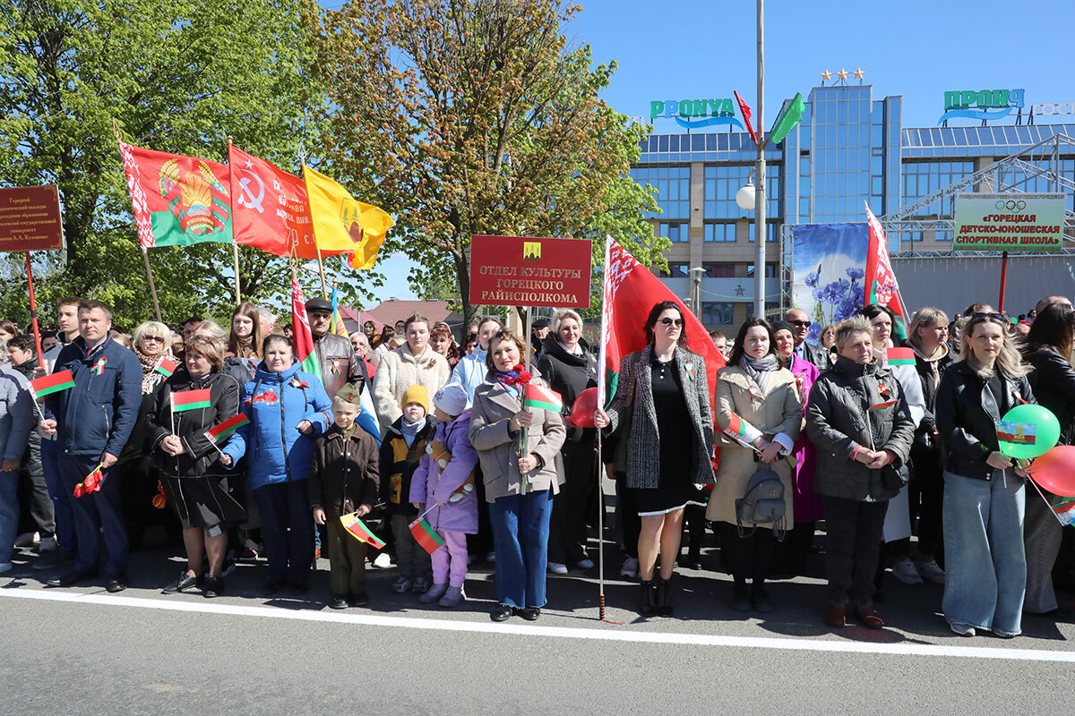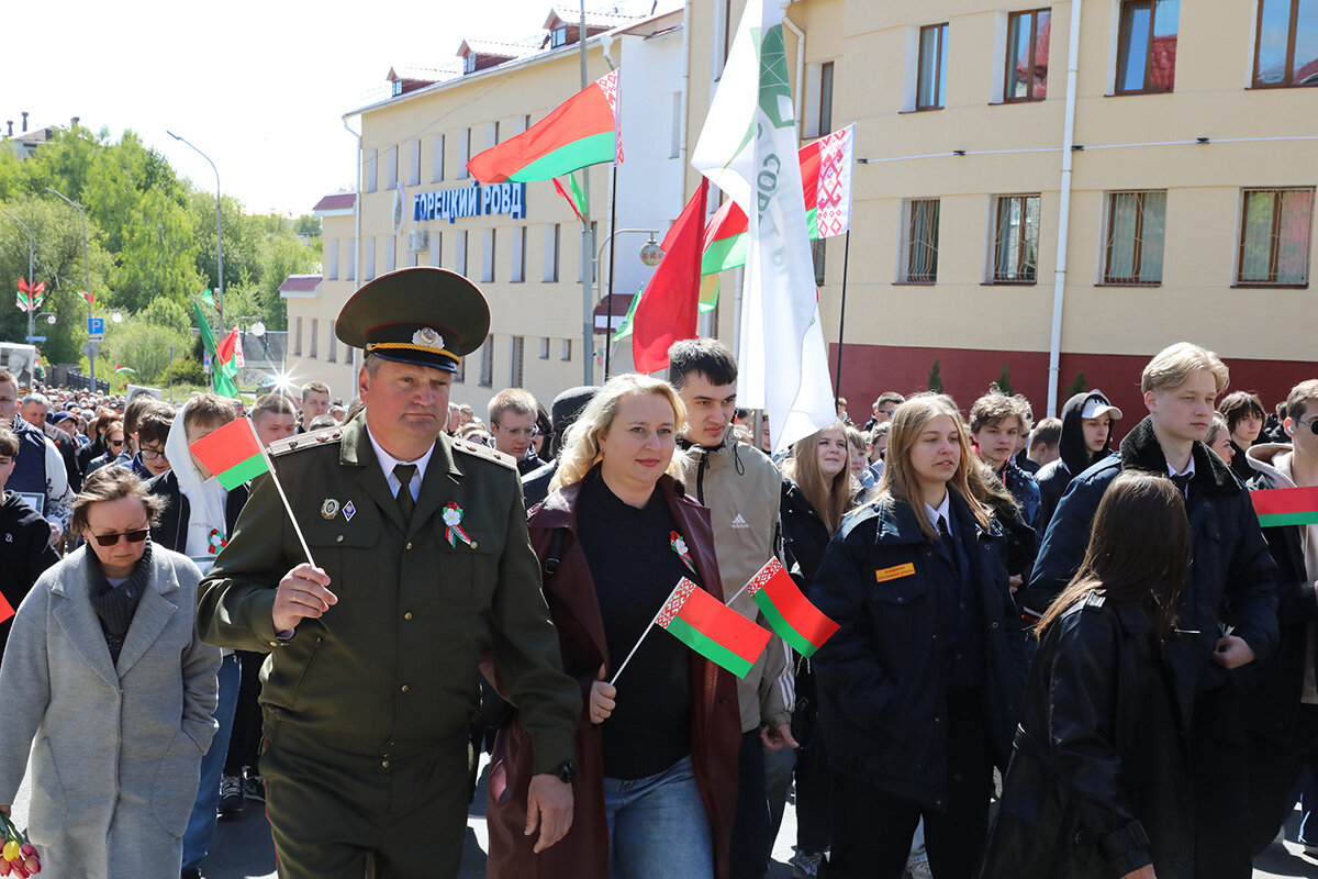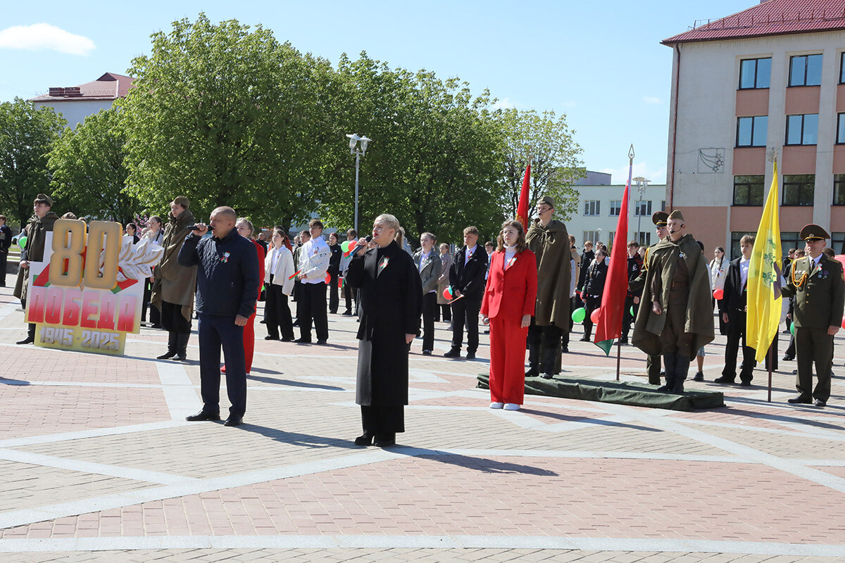 На Центральной площади собрались жители Горок, представители трудовых коллективов, студенты БГСХА, учащиеся учреждений образования. Здесь прошла театрализованная композиция «Великая Победа-гордость поколений».