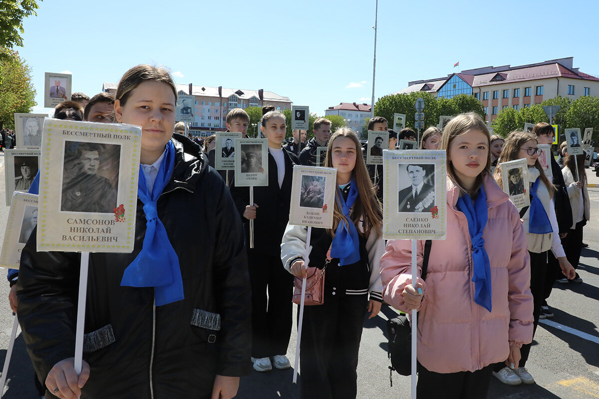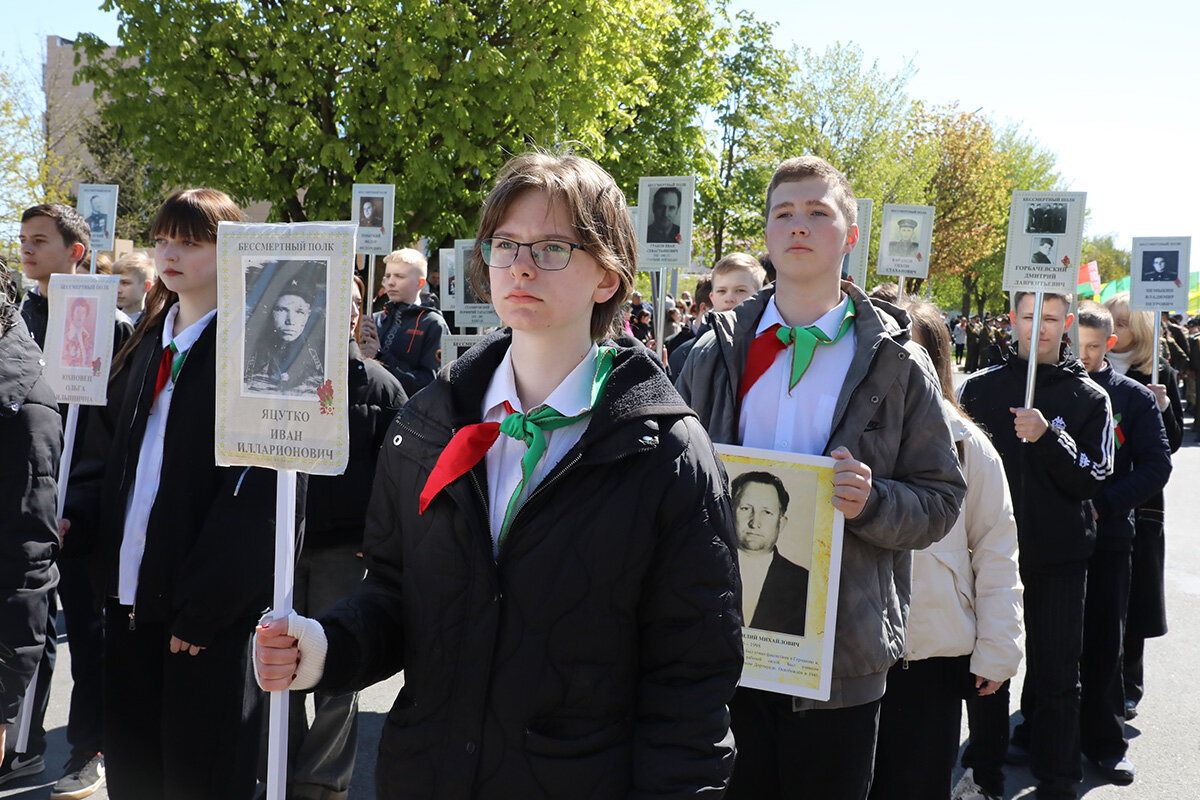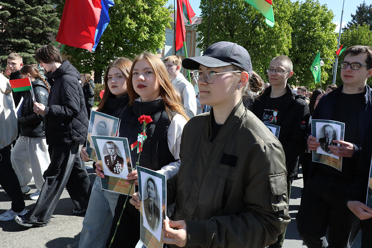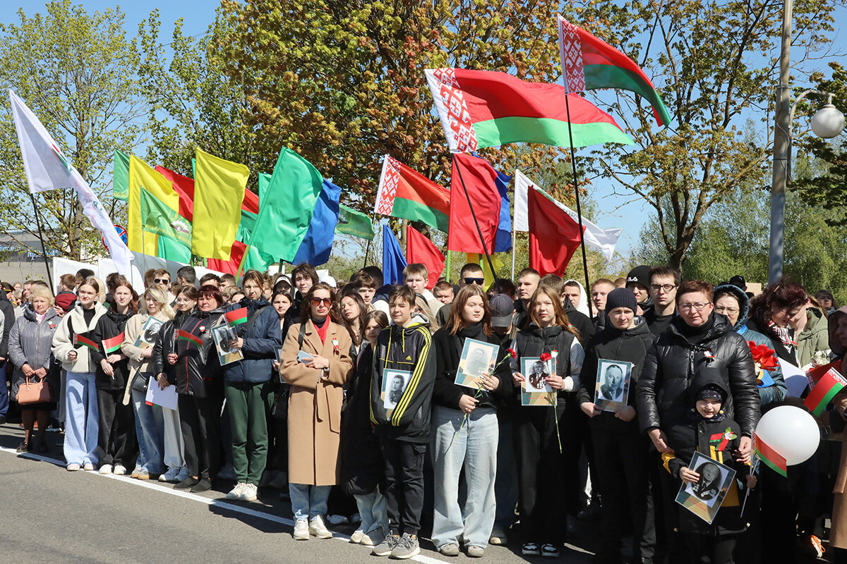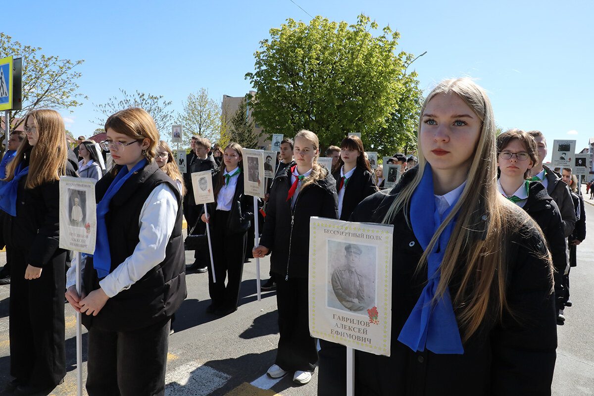 В колоннах – школьники, студенты, трудовые коллективы, военные, волонтеры. В составе шествия шли те, чьи предки отстояли мир, сломили врага и завоевали Великую Победу. Люди несли флаги, портреты героев, цветы, звучали песни военных лет. Каждый шаг – это знак благодарности тем, кто подарил нам мирное небо.