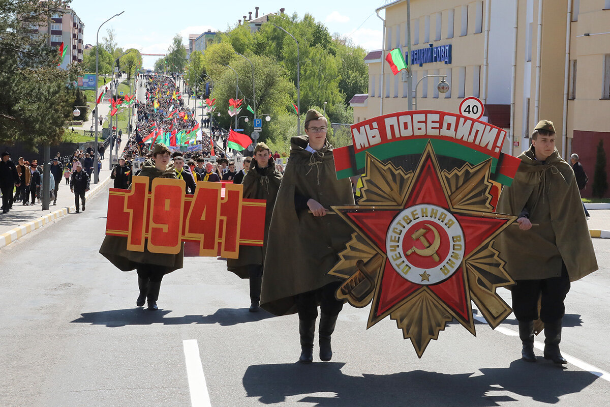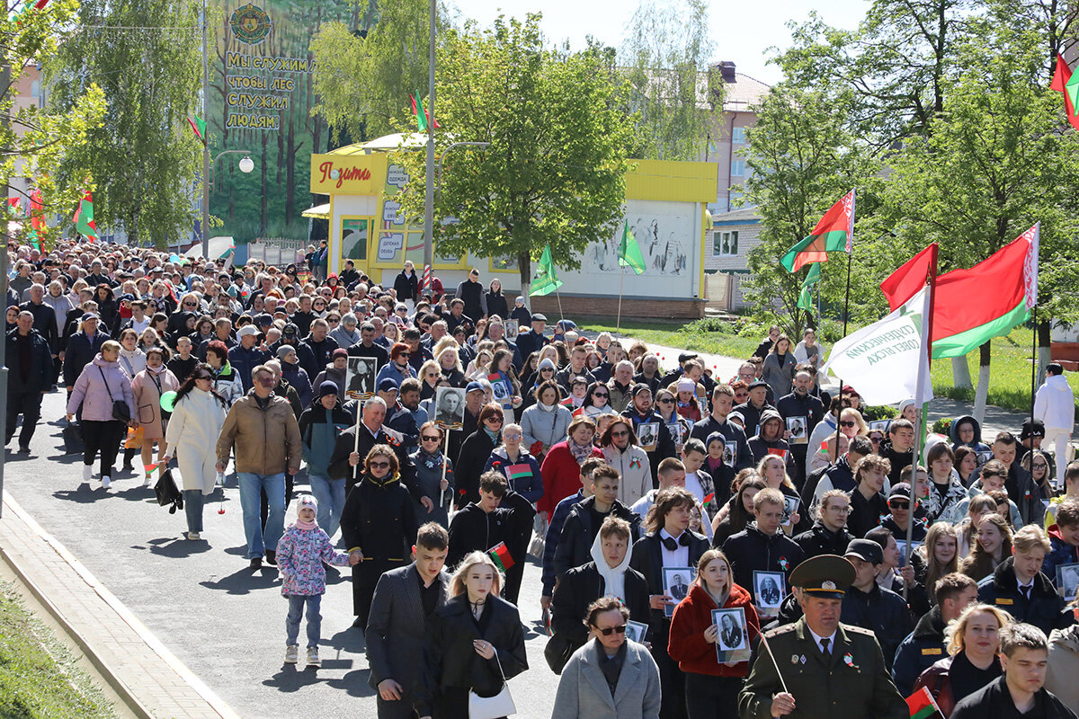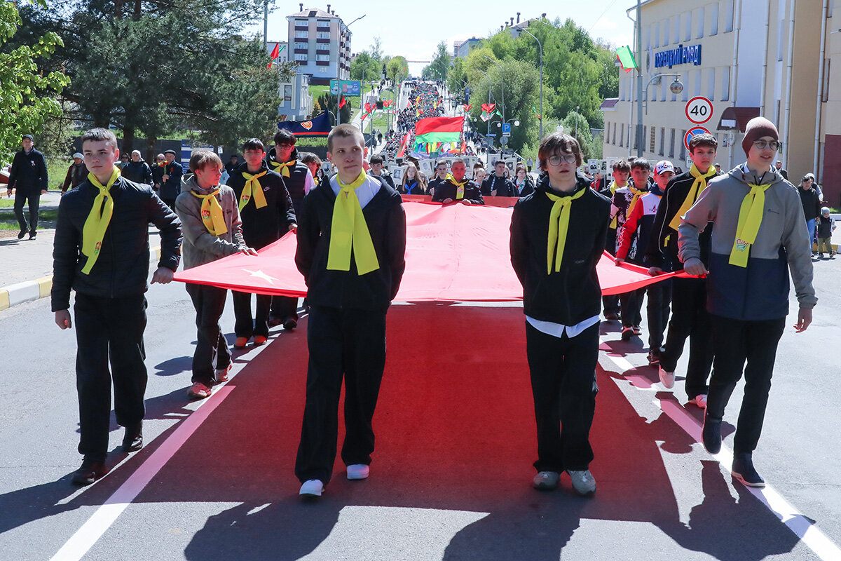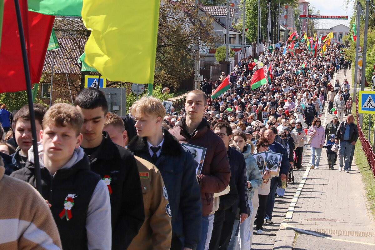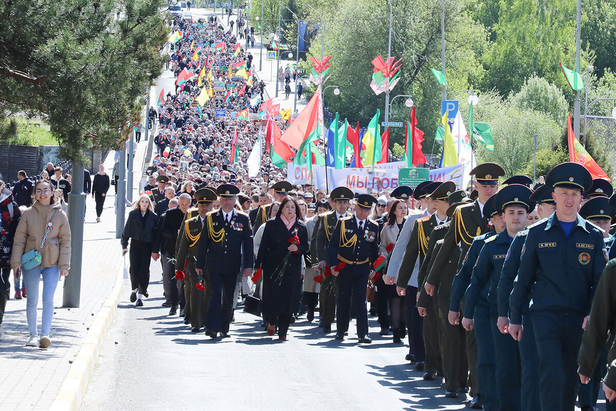 В колоннах – школьники, студенты, трудовые коллективы, военные, волонтеры. В составе шествия шли те, чьи предки отстояли мир, сломили врага и завоевали Великую Победу. Люди несли флаги, портреты героев, цветы, звучали песни военных лет. Каждый шаг – это знак благодарности тем, кто подарил нам мирное небо.